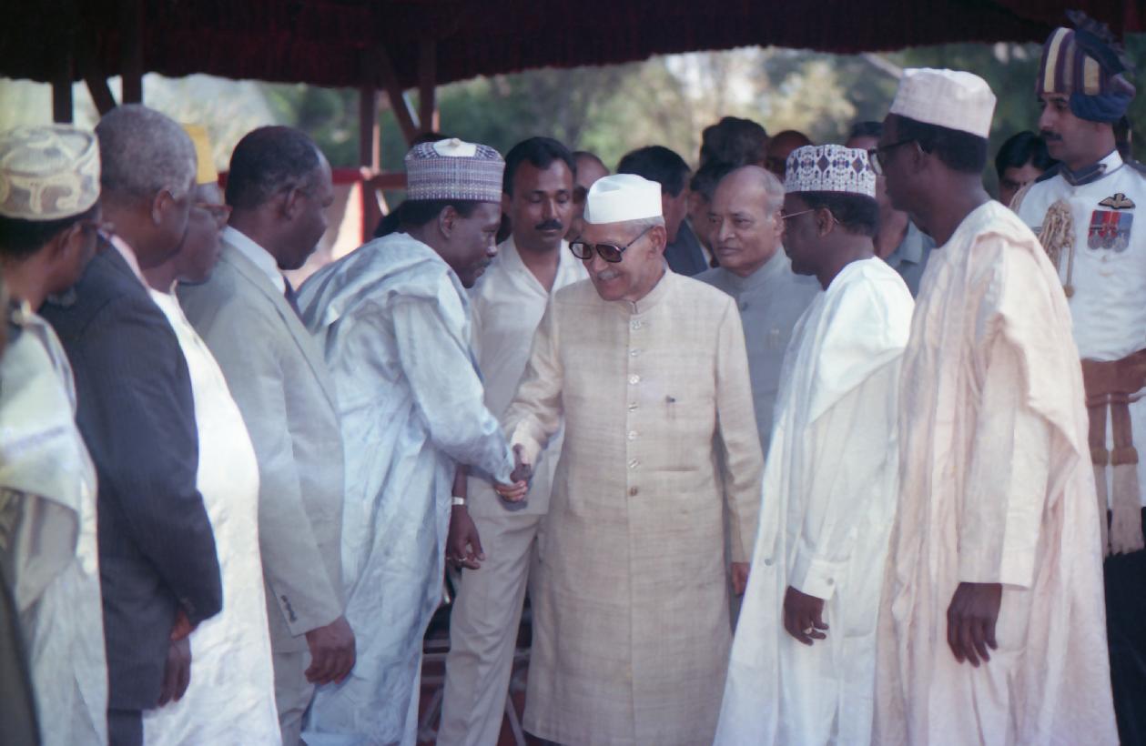 | Caption: | The President of India, Dr. Shankar Dayal Sharma receiving the President of Nigeria, General Sani Abacha at his Ceremonial Reception, at Rashtrapati Bhavan in New Delhi on March 27, 1994. |