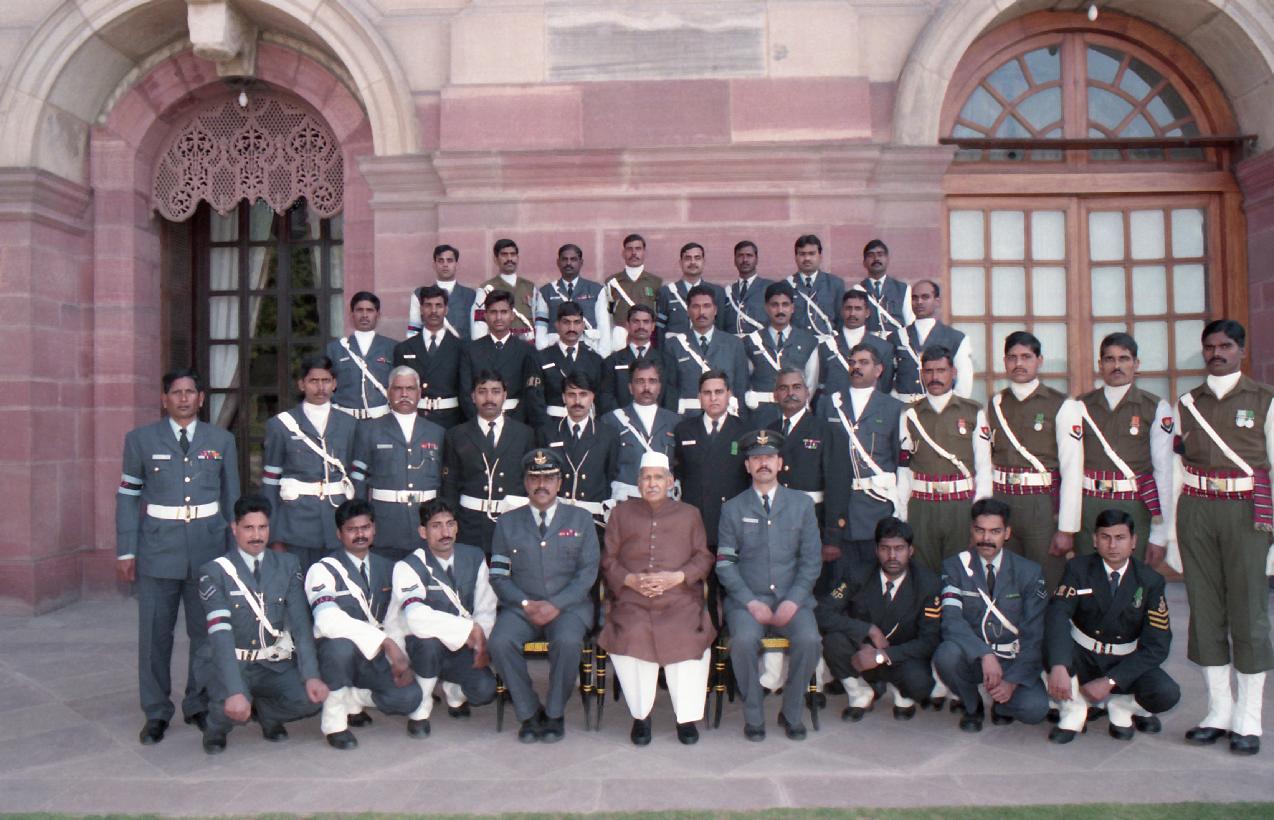 | Caption: | The President of India, Dr. Shankar Dayal Sharma in Group Photo with Outriders at Rashtrapati Bhavan in New Delhi on January 30, 1995. |
