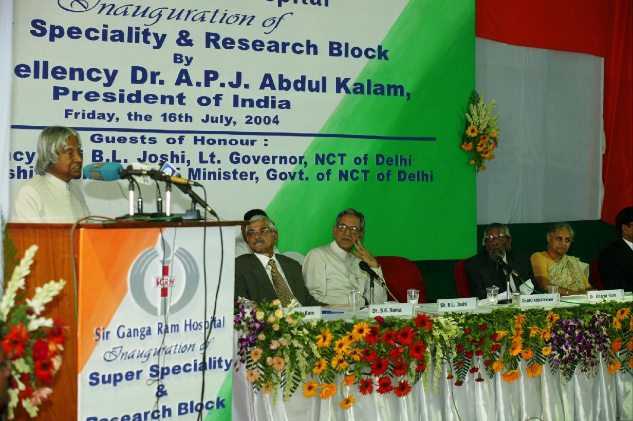 | Caption: | The President of India, Dr A P J Abdul Kalam inaugurating the Super Speciality Research Block of Sir Ganga Ram Hospital at Sir Gangaram Hospital in New Delhi on July 16, 2004 |