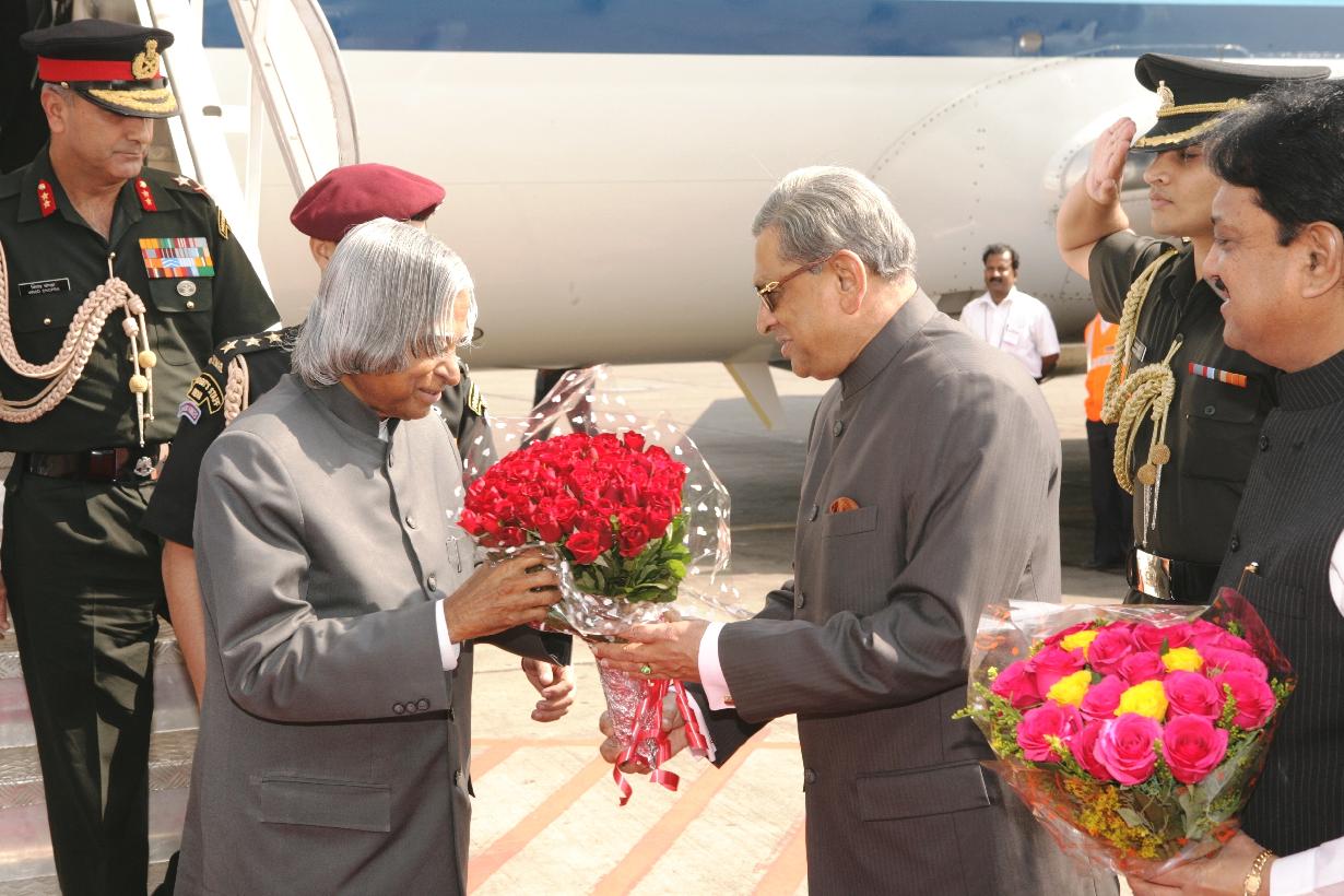 | Caption: | The President of India, Dr A P J Abdul Kalam being received by the Governor of Maharashtra, Shri S M Krishna at Mumbai Airport in Maharashtra on Dec 23, 2006 |