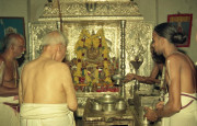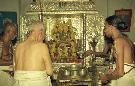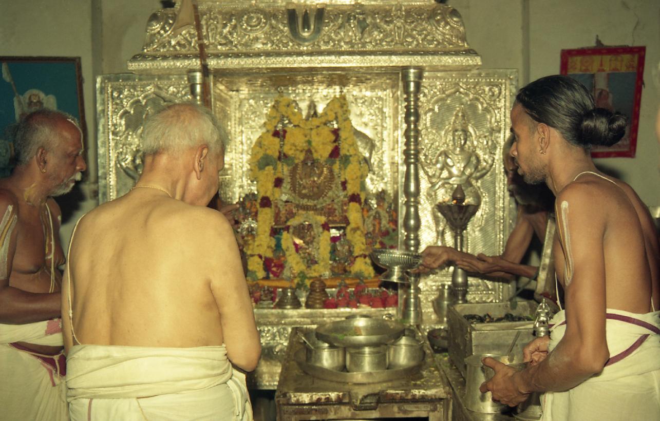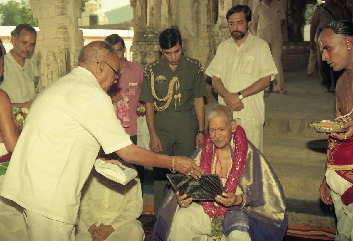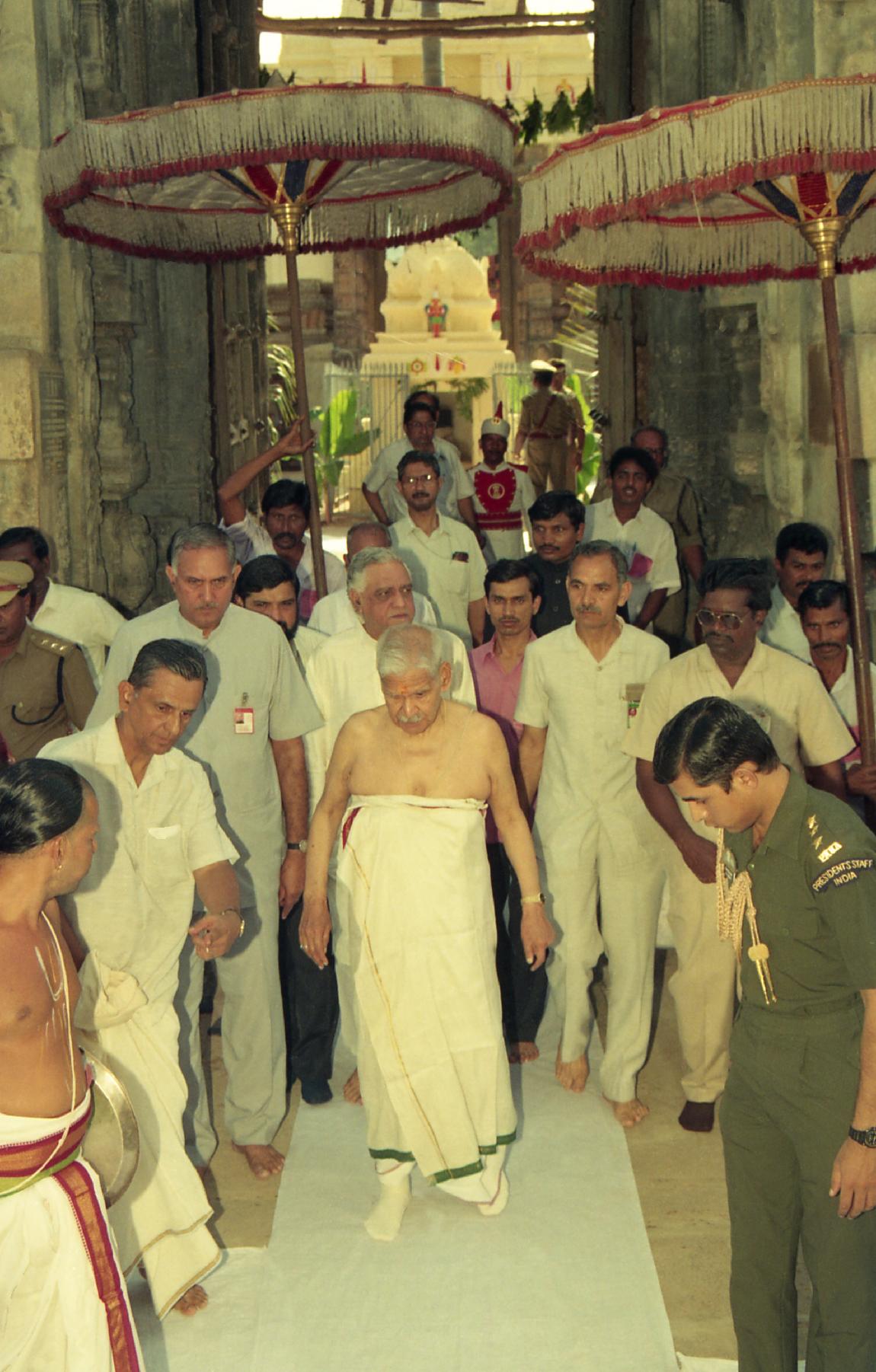 | Caption: | The President of India, Dr. Shankar Dayal Sharma performing puja at Sri Laxminarasimha Swamy Temple, at Ahobilam, in Andhra Pradesh on October 05, 1995. |