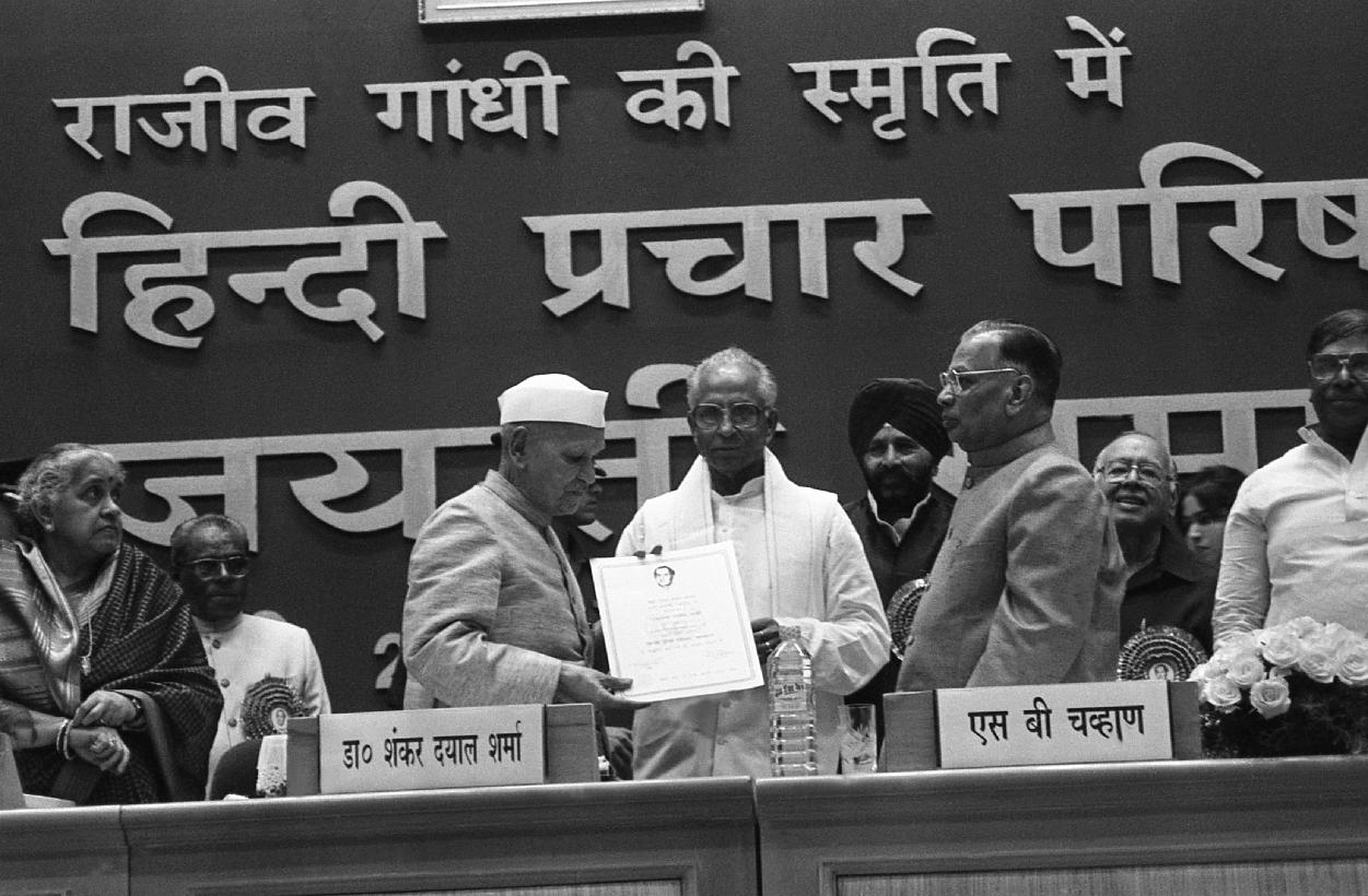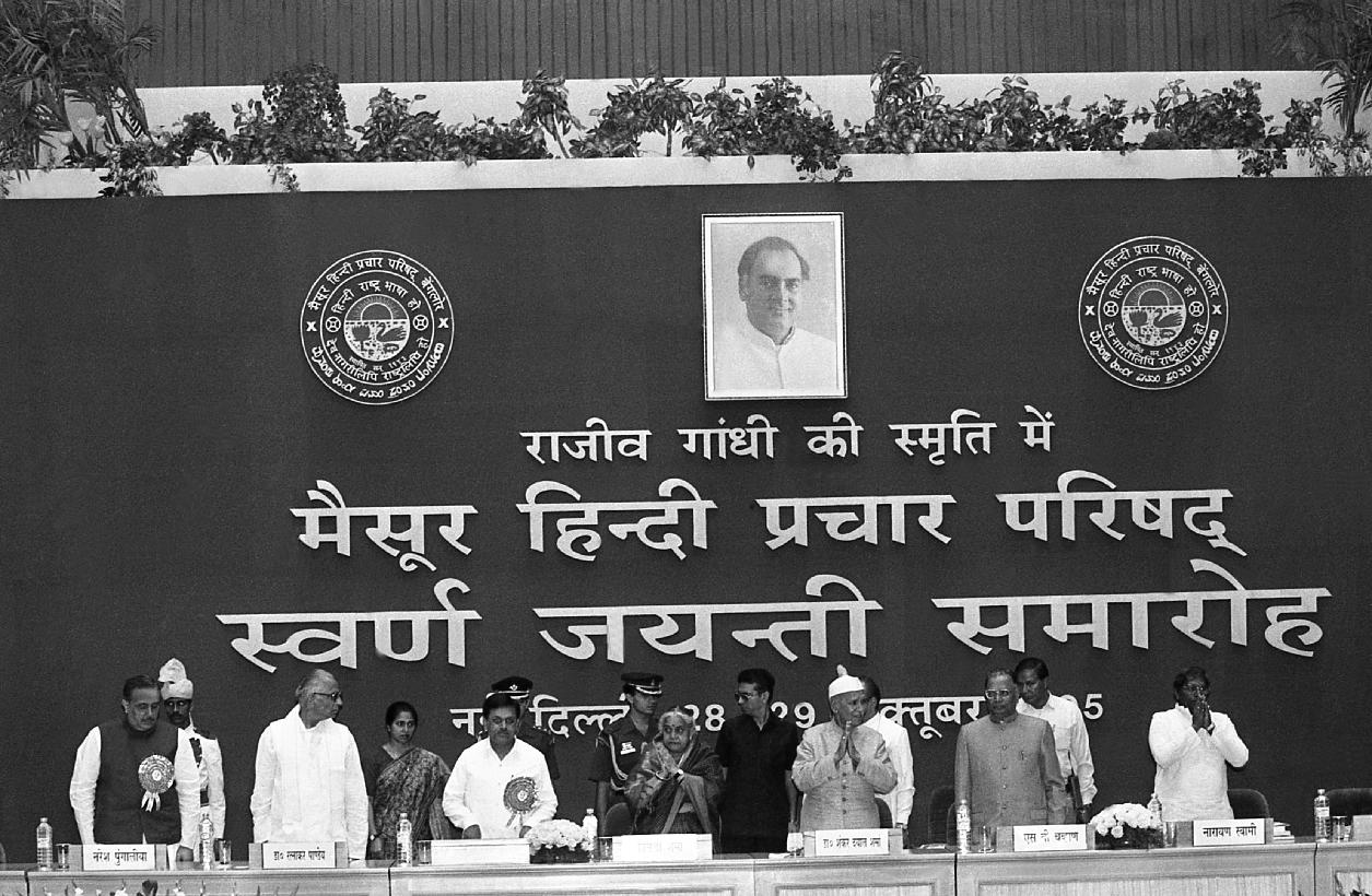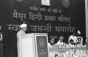 | Caption: | The President of India, Dr. Shankar Dayal Sharma presiding over the concluding function of Golden Jubilee Celebrations of Mysore Hindi Prachar Parishad at Vigyan Bhavan in New Delhi on October 28, 1995. |