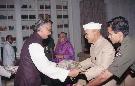 | Caption: | The President of India, Dr. Shankar Dayal Sharma receiving Diwali greetings from Vice-President of India, Shri K.R. Narayanan, Smt. Usha Narayanan and the Speaker, Lok Sabha, Shri Shivraj Patil at Rashtrapati Bhavan in New Delhi on October 23, 1995. |