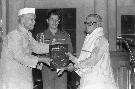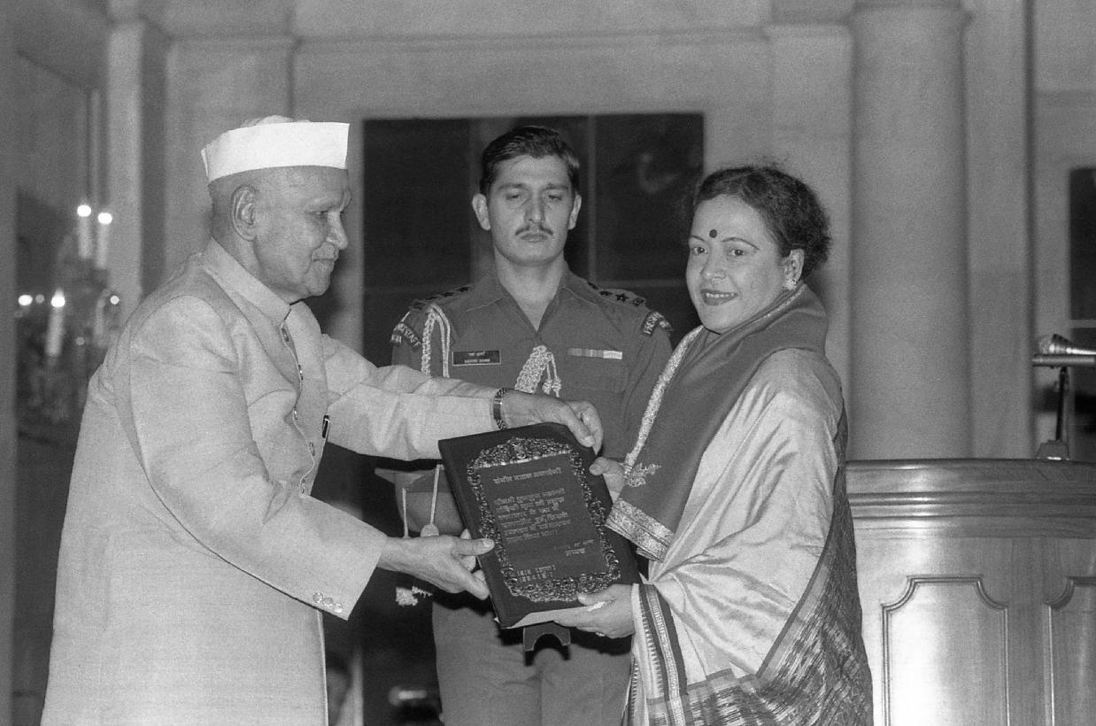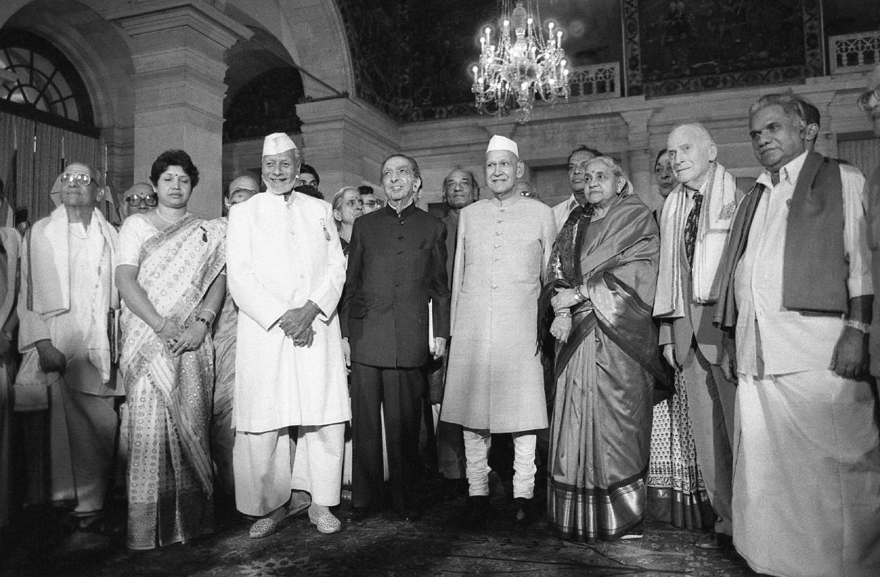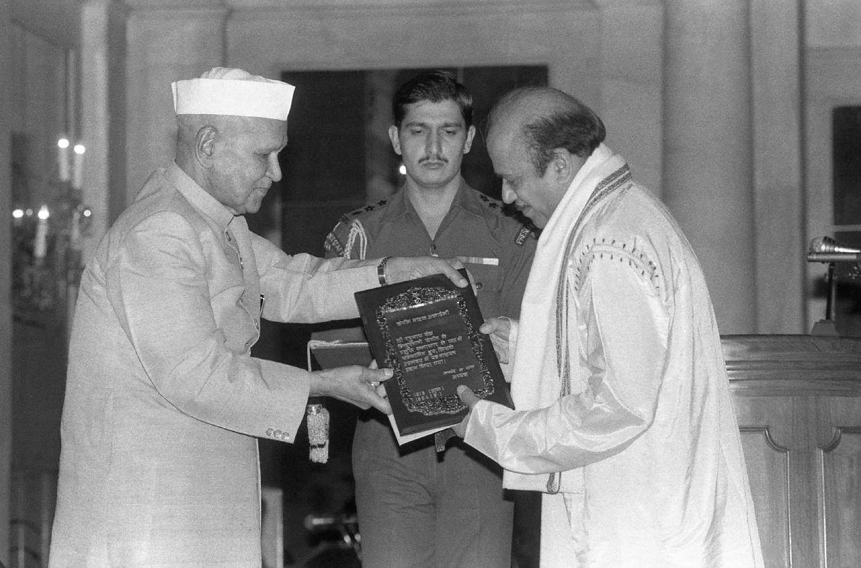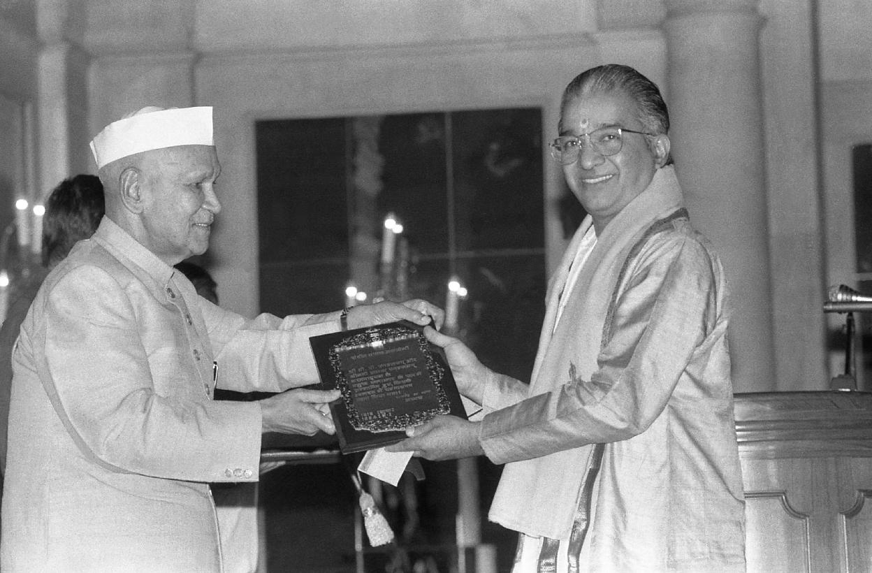 | Caption: | The President of India, Dr. Shankar Dayal Sharma presenting Sangeet Natak Akademi Awards at Rashtrapati Bhavan in New Delhi on October 16, 1995. |