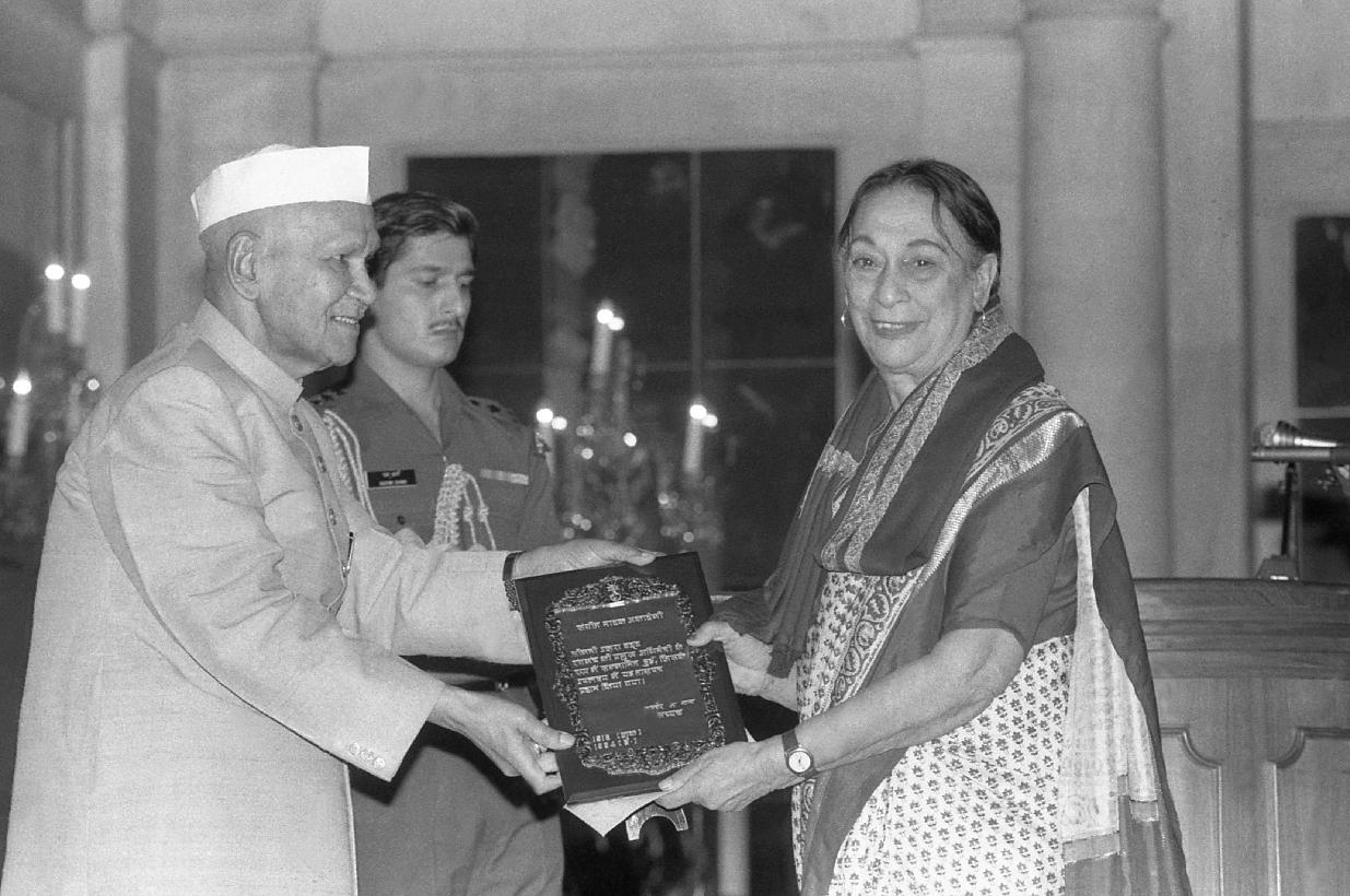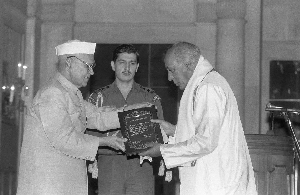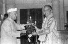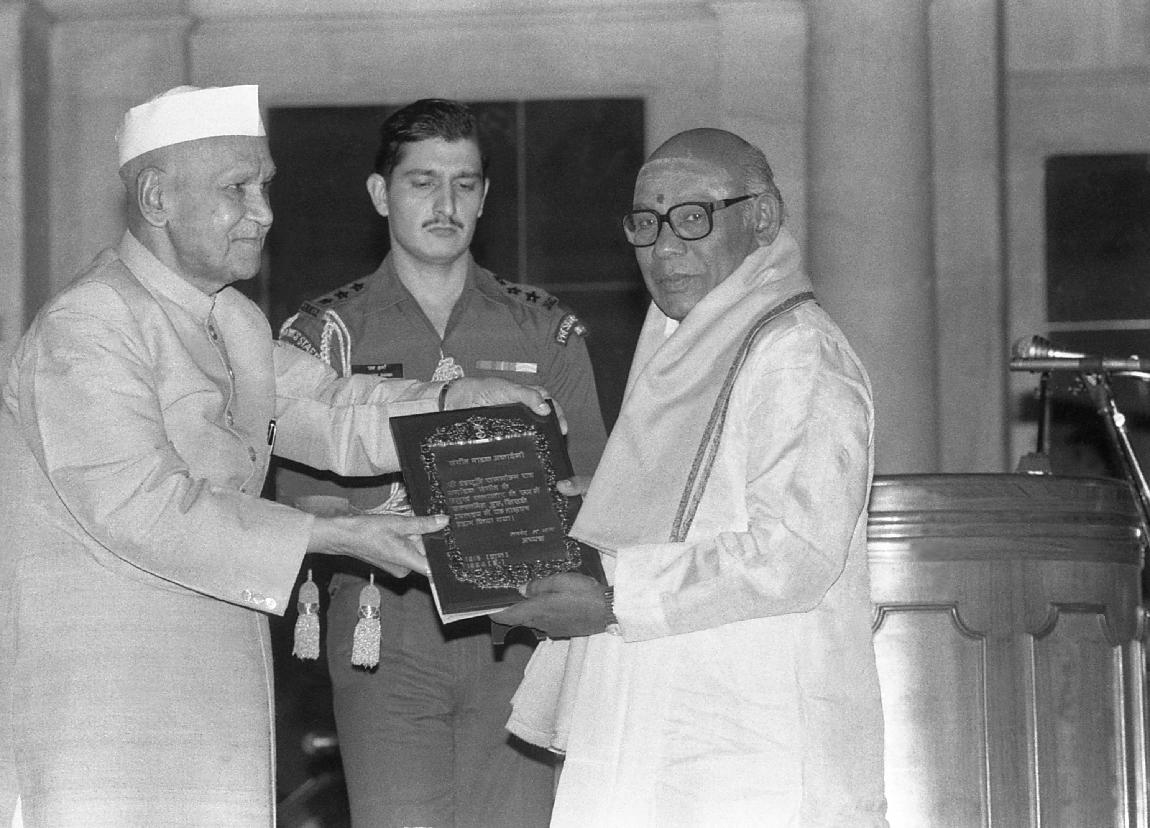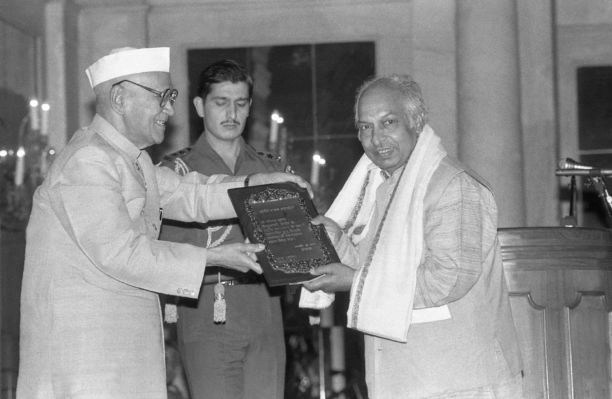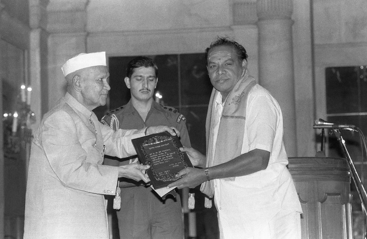| Caption: | The President of India, Dr. Shankar Dayal Sharma presenting Sangeet Natak Akademi Awards at Rashtrapati Bhavan in New Delhi on October 16, 1995. |
