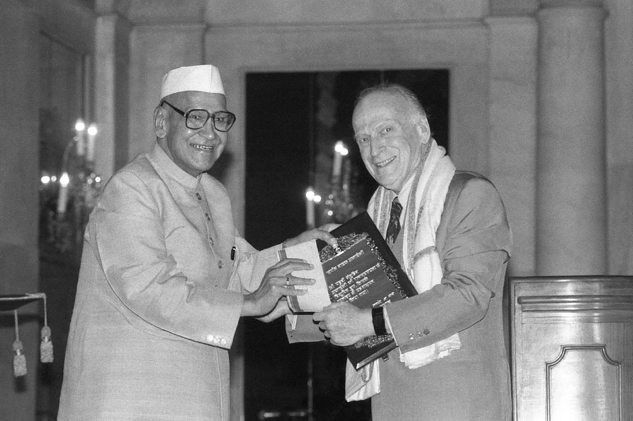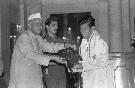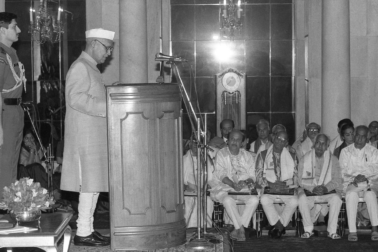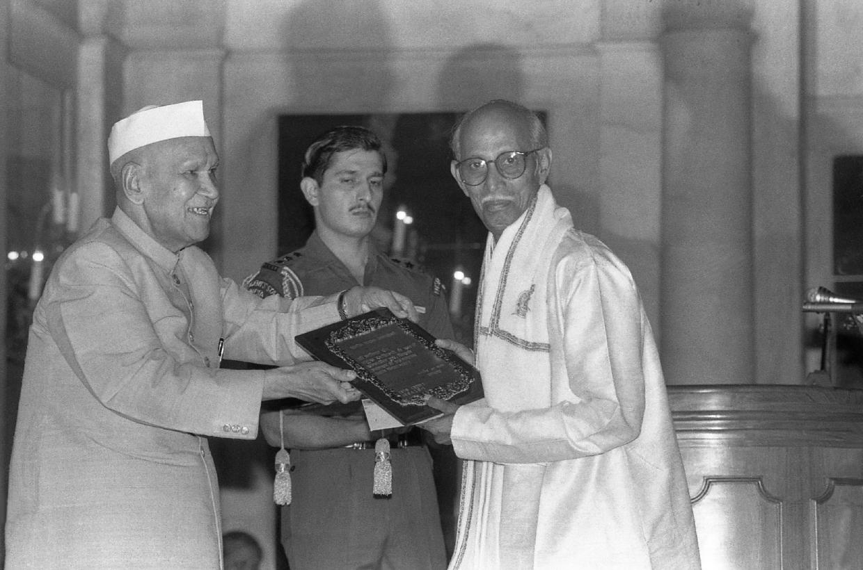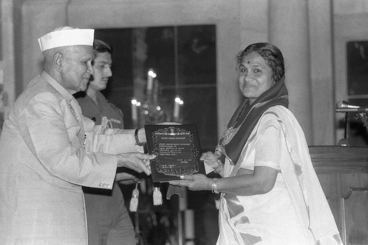 | Caption: | The President of India, Dr. Shankar Dayal Sharma presenting Sangeet Natak Akademi Awards at Rashtrapati Bhavan in New Delhi on October 16, 1995. |