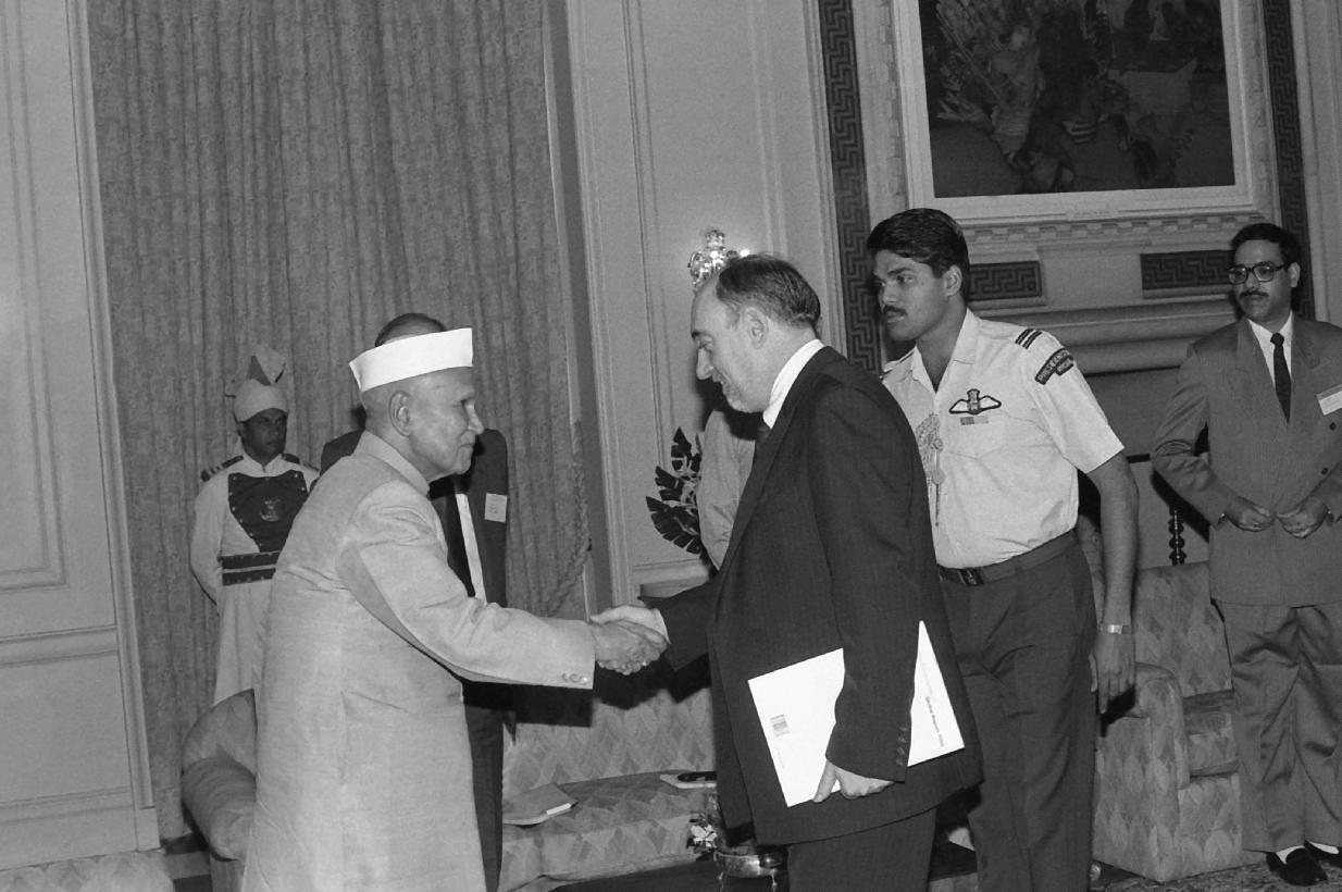 | Caption: | The President of India, Dr. Shankar Dayal Sharma meeting with H.E. Mr. Mauricio de Mariay Campos, Director General of United Nations Industrial Development Organization (UNIDO) at Rashtrapati Bhavan in New Delhi on October 17, 1995. |