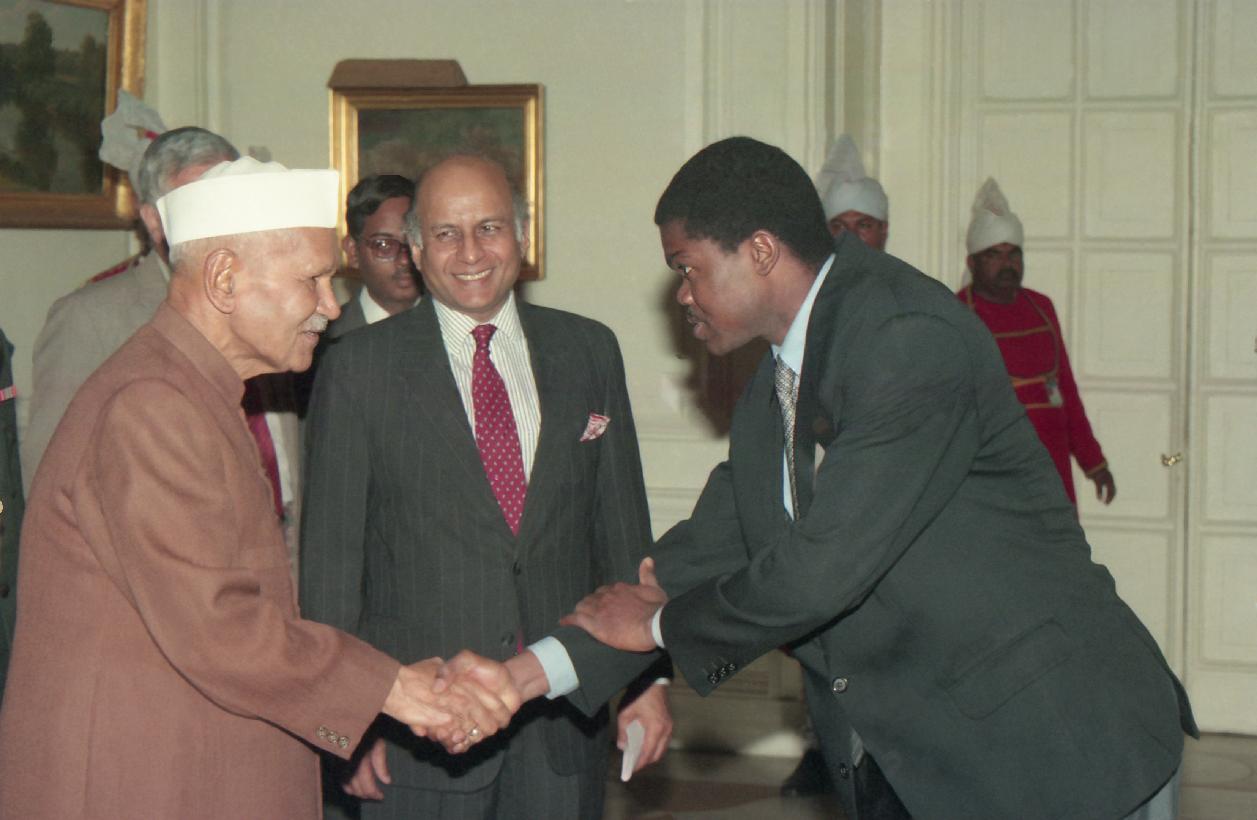 | Caption: | The President of India, Dr. Shankar Dayal Sharma meeting with Diplomats participating in the 6th Professional Course for Foreign Diplomats at Rashtrapati Bhavan in New Delhi on November 17, 1995. |