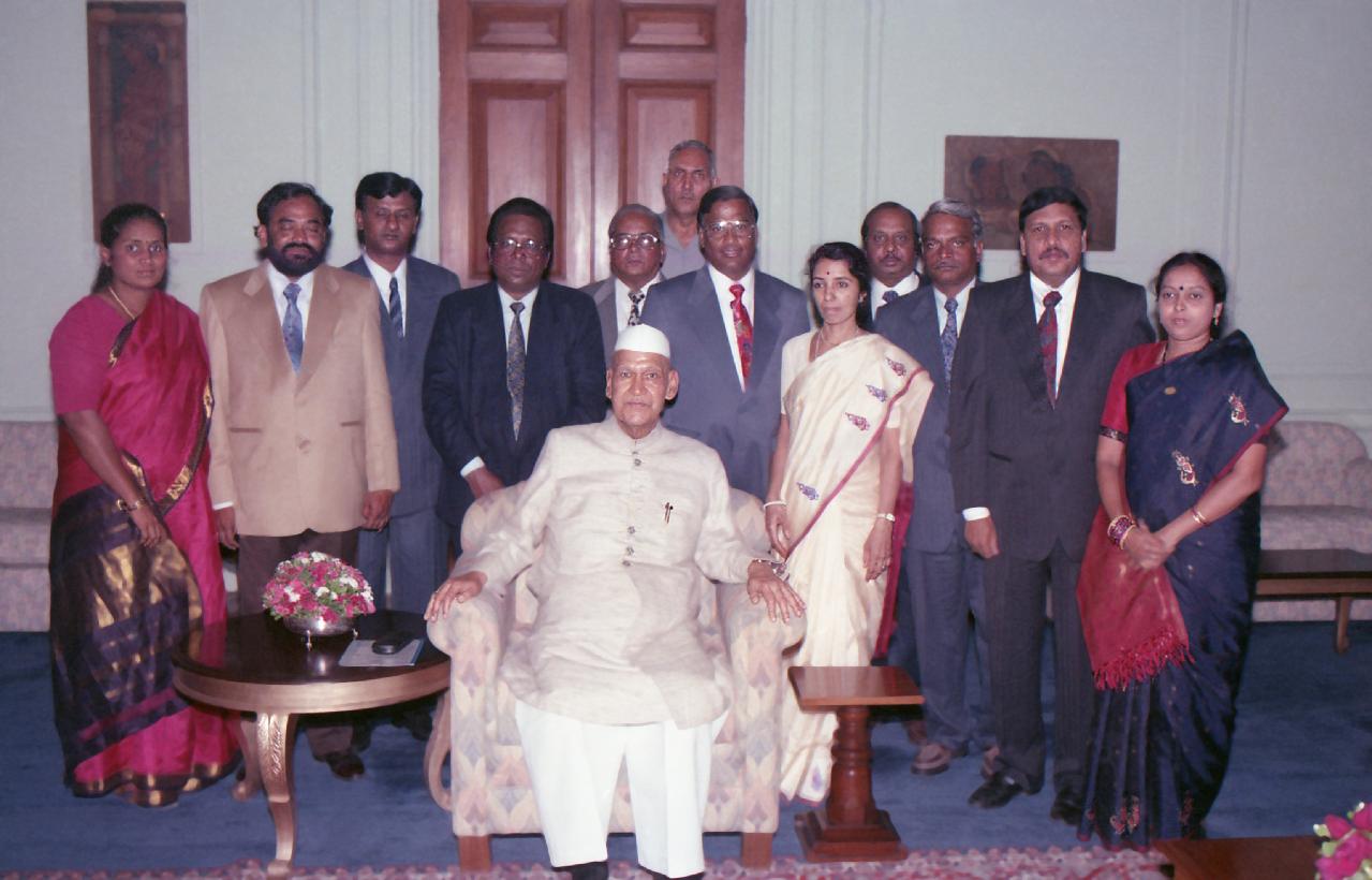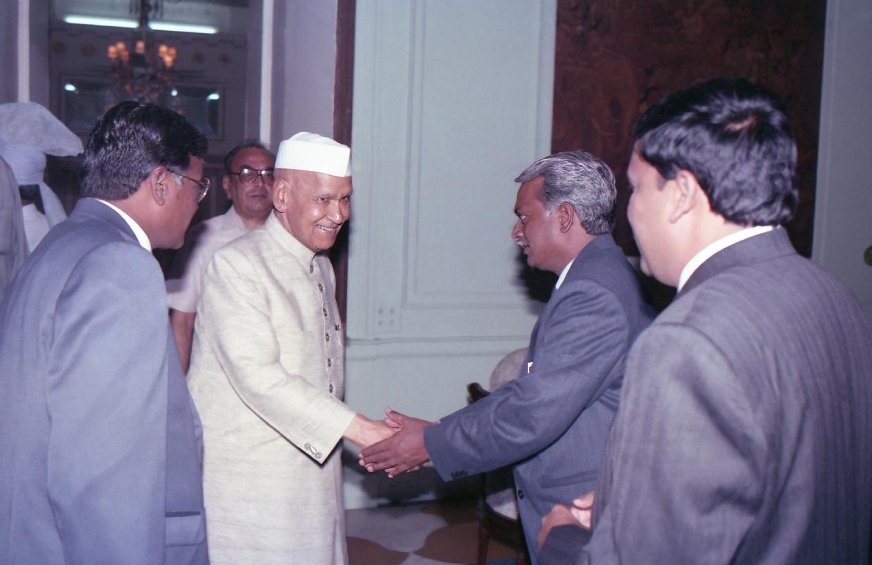 | Caption: | A delegation of Vasavi Co-Operative Urban Bank Ltd., Hyderabad calling on the President of India, Dr. Shankar Dayal Sharma at Rashtrapati Bhavan in New Delhi on June 07, 1994. |