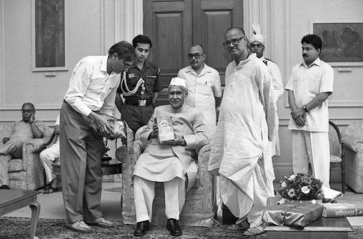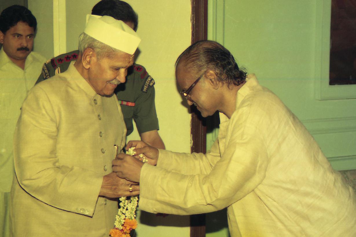 | Caption: | The President of India, Shri Shankar Dayal Sharma receiving copies of the books "Kabir Samagra" and "Balraj-Santosh Sahani Samagra" brought out by Hindi Pracharak Sansthan, Varanasi at Rashtrapati Bhavan in New Delhi on May 01, 1996. |
