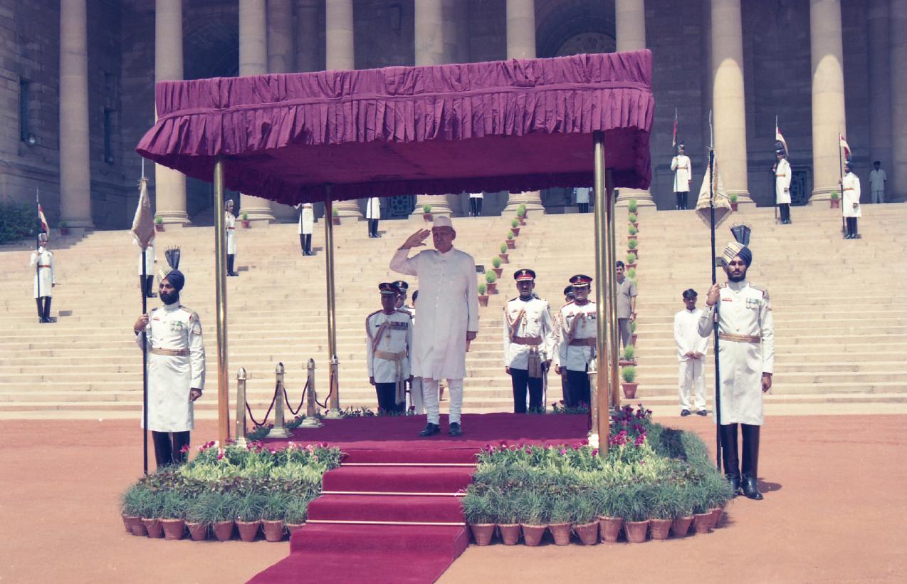 | Caption: | The President of India, Shri Shankar Dayal Sharma receiving the National Salute from the President's Body Guard, at Forecourt of Rashtrapati Bhavan before leaving for Central Hall of Parliament to address the both the Houses of Parliament, in New Delhi on May 24, 1996. |