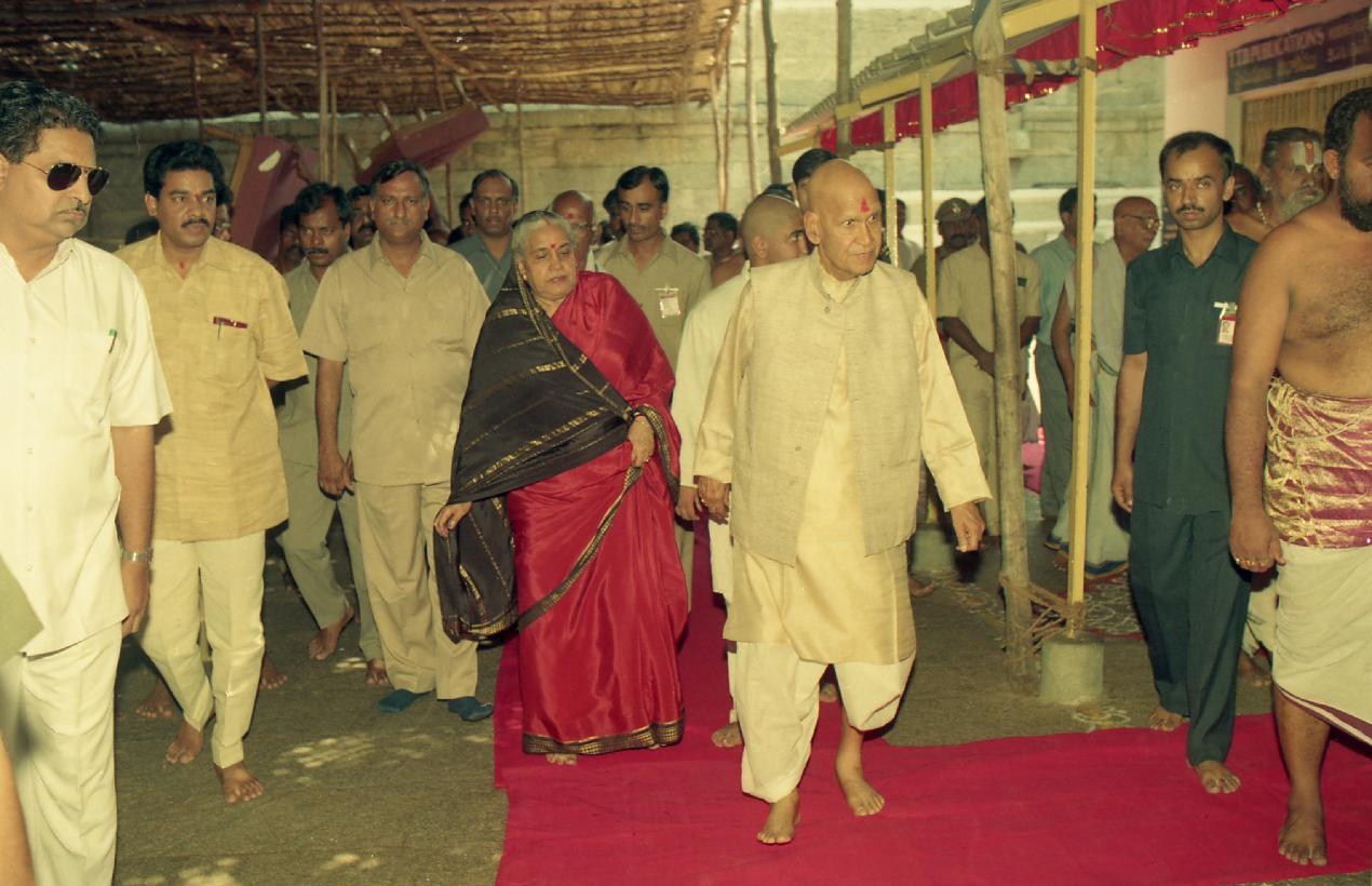 | Caption: | The President of India, Dr. Shankar Dayal Sharma visiting Srivari Temple, Tirumala, in Andhra Pradesh on May 25, 1996. |