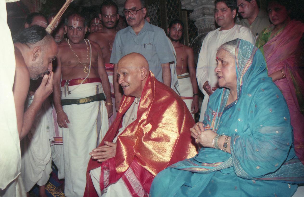 | Caption: | The President of India, Dr. Shankar Dayal Sharma visiting Sri Padmavati Ammavari Temple, at Tiruchanur, in Andhra Pradesh on May 26, 1996. |
