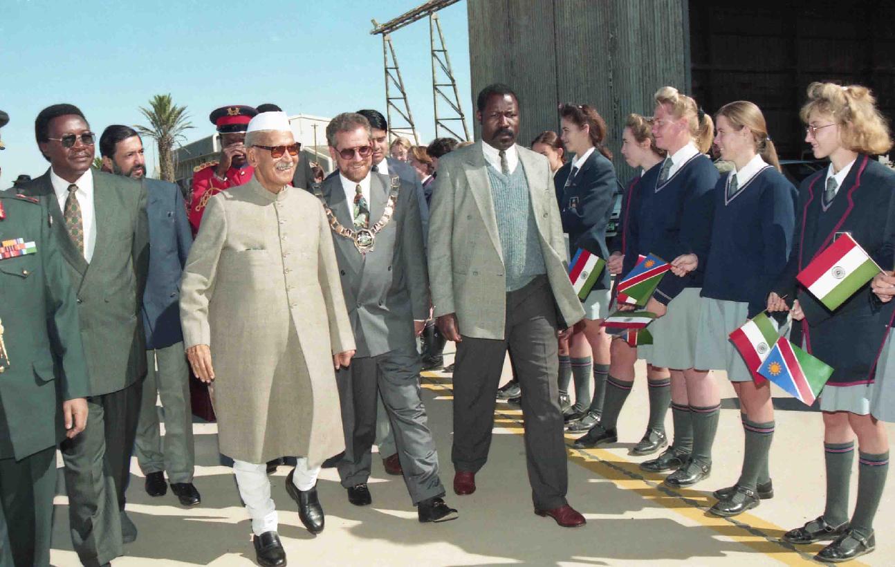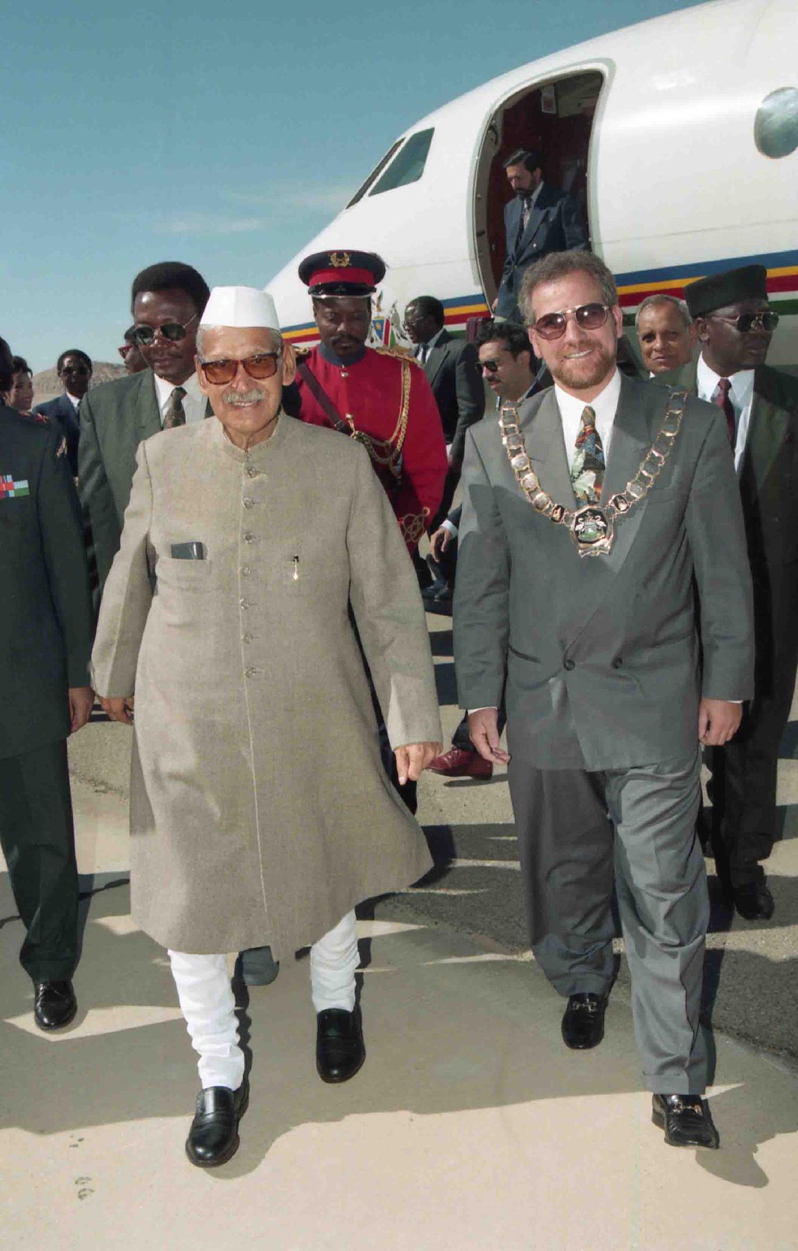 | Caption: | The President of India, Dr. Shankar Dayal Sharma arrives at Rooikop airport, Walvis Bay on June 06, 1995. |