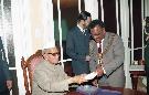 | Caption: | The President of India, Dr. Shankar Dayal Sharma at the lunch hosted by the Governor of Erongo Region, at Walvis Bay on June 06, 1995. |