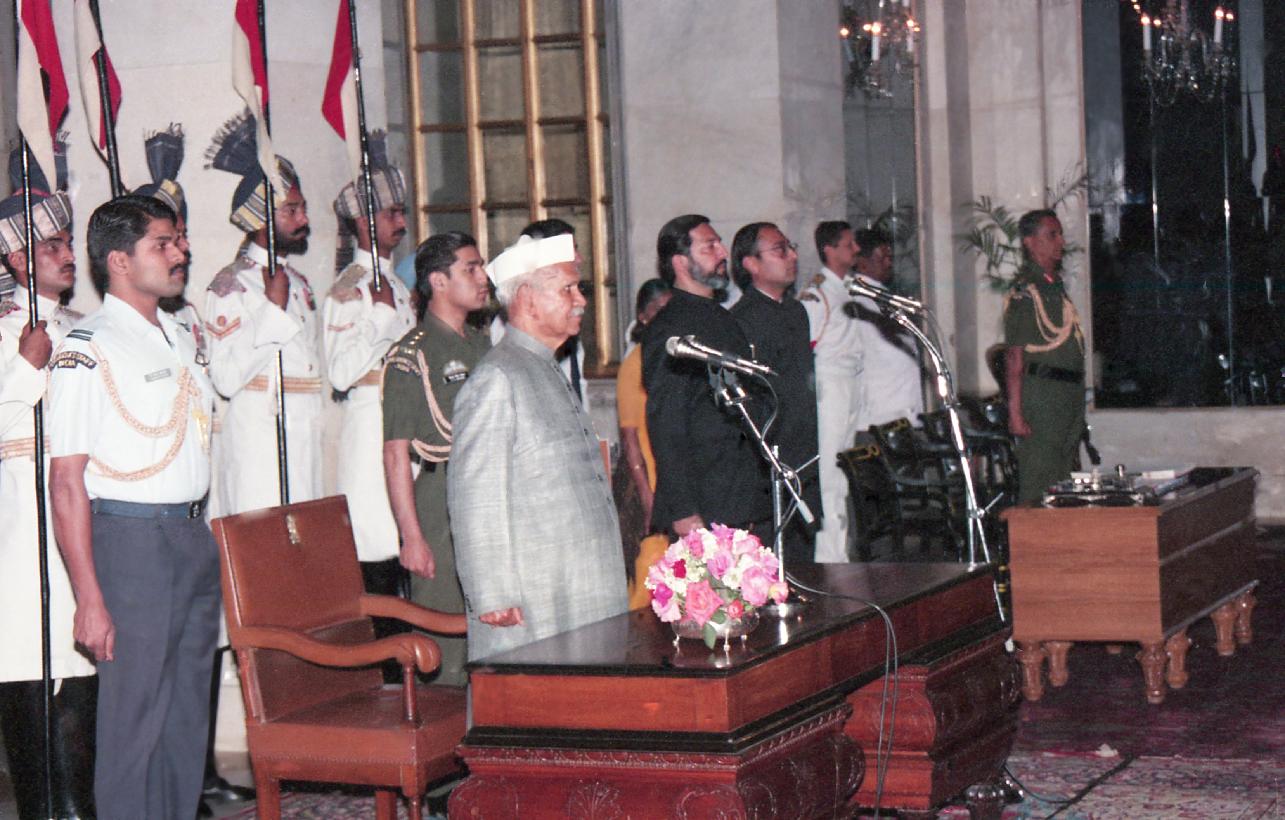 | Caption: | The President of India, Dr. Shankar Dayal Sharma administering the Oath to Shri V.K. Shunglu as Comtroller and Auditor General of India at a Swearing-in ceremony, at Rashtrapati Bhavan on March 15, 1996. |