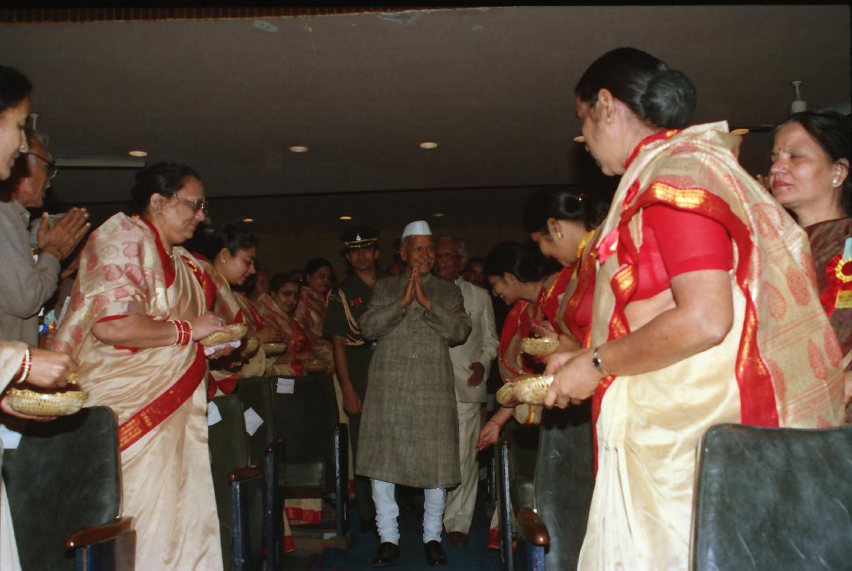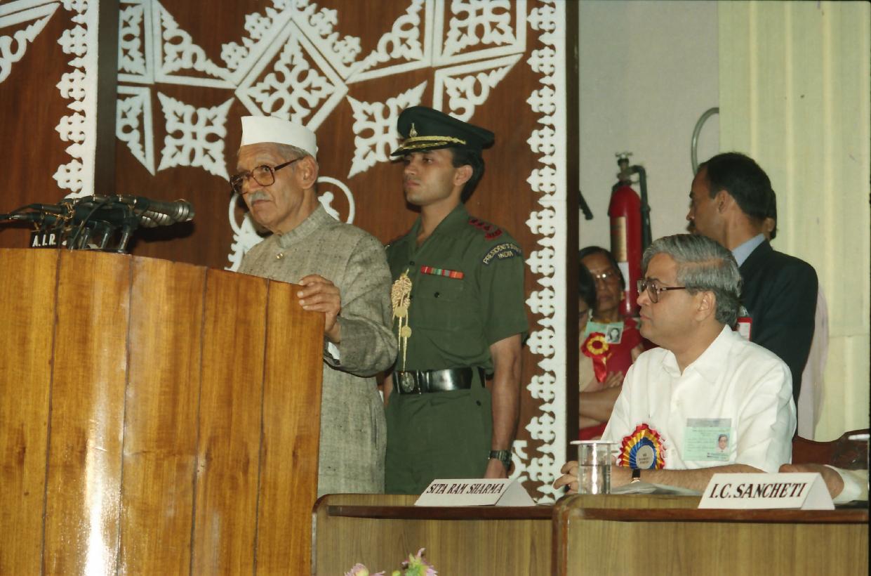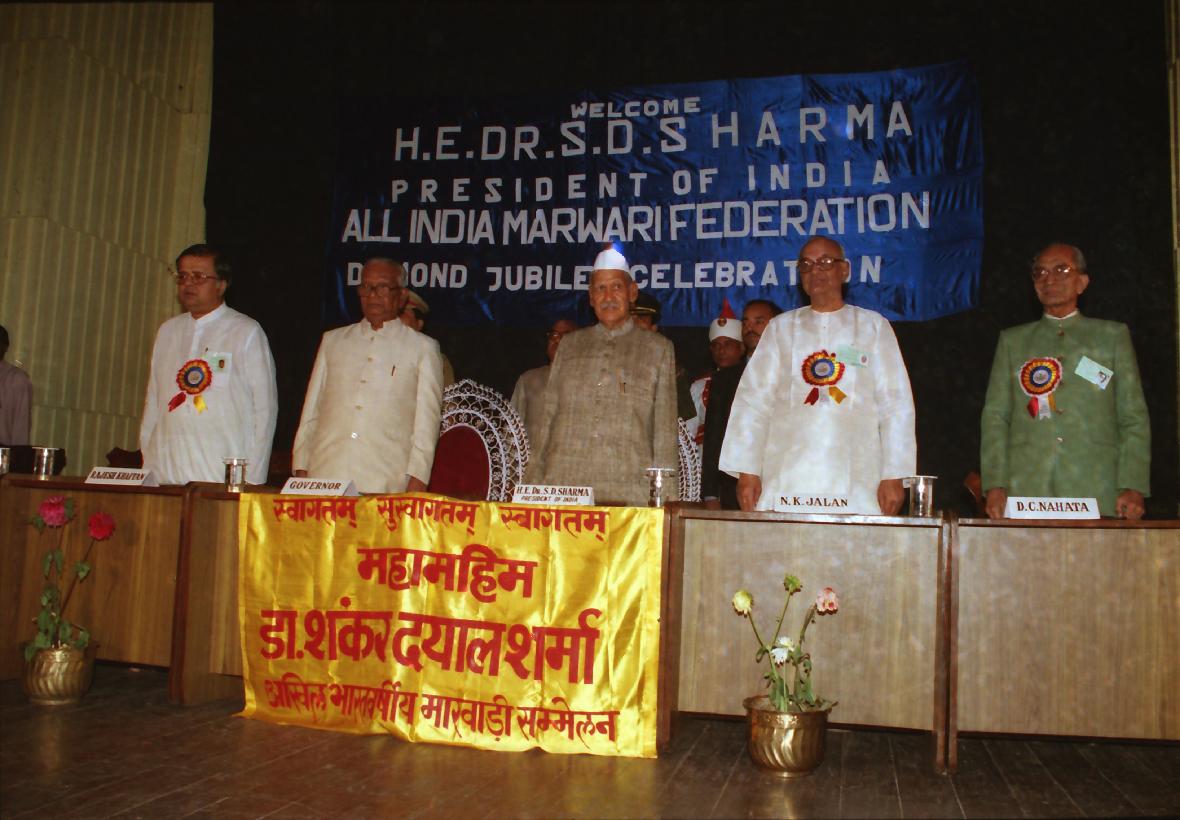 | Caption: | The President of India, Dr. Shankar Dayal Sharma attending the Diamond Jubilee Celebration of the All India Marwari Federation, at Calcutta on March 01, 1996. |