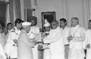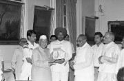 | Caption: | The President of India, Dr. Shankar Dayal Sharma receiving a set of 11 books brought out by Sampurnanand Sanskrit Vishwavidyalaya, Varanasi at Rashtrapati Bhavan in New Delhi on April 02, 1996. |