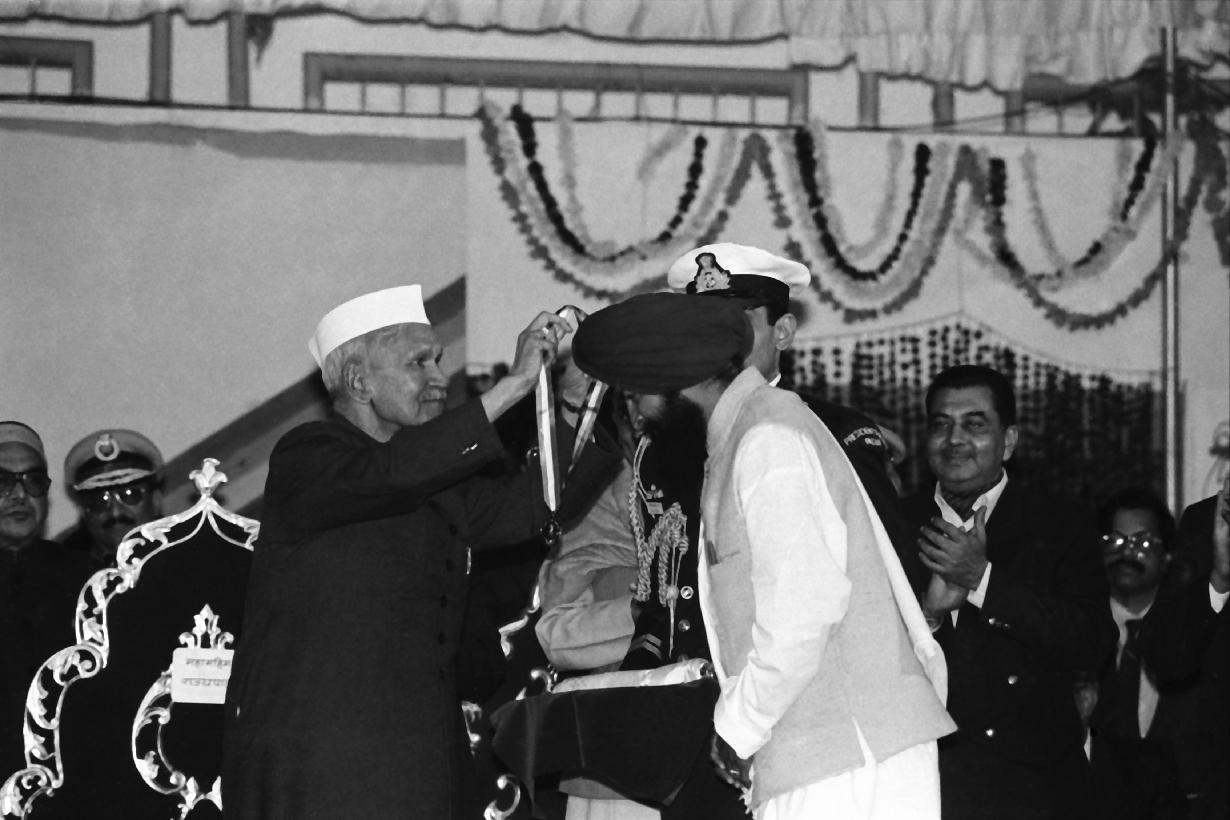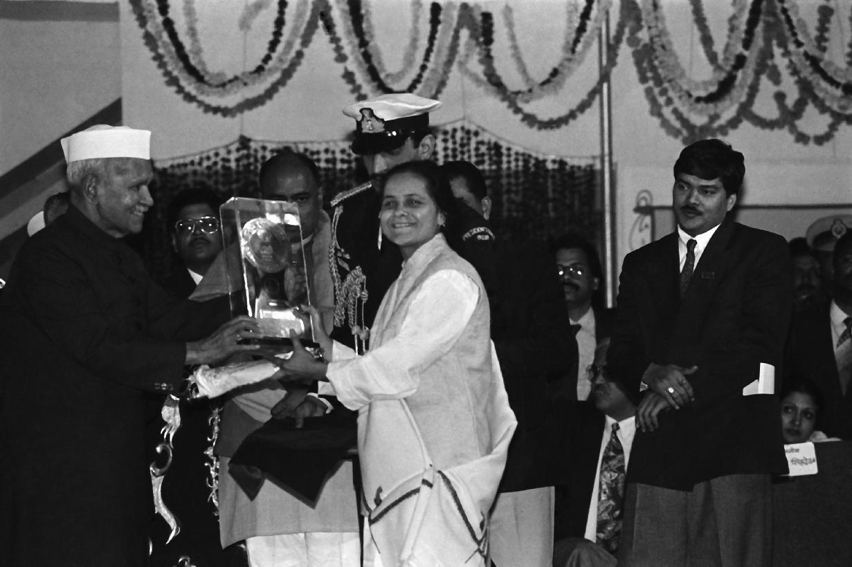 | Caption: | The President of India, Dr. Shankar Dayal Sharma presenting National Youth Awards and releasing Commemorative Stamp after inaugurating the National Youth Festival, at Bhopal, in Madhya Pradesh on January 12, 1995. |