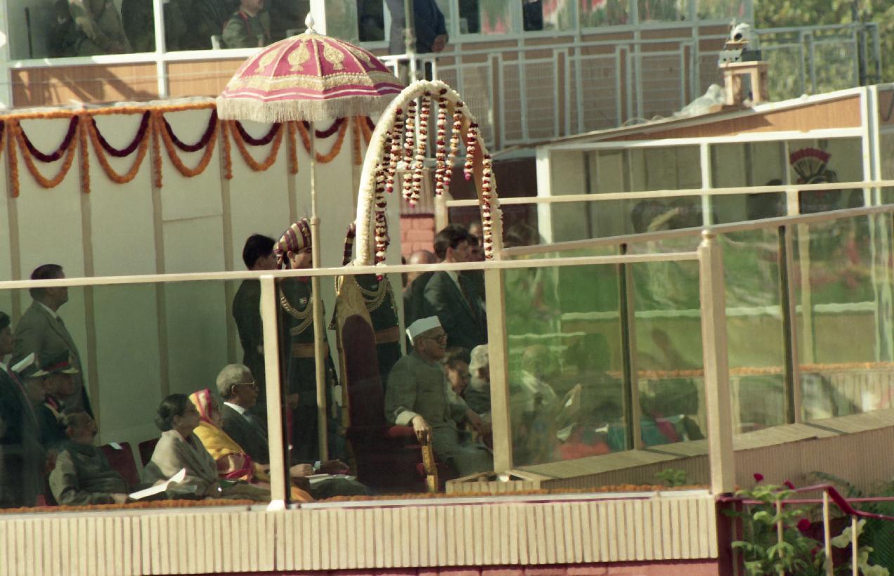 | Caption: | The President of India, Dr. Shankar Dayal Sharma alongwith H.E. Dr. Nelson R. Madela, President of South Africa witnessing the Republic Day Parade, at Rajpath in New Delhi on January 26, 1995. |