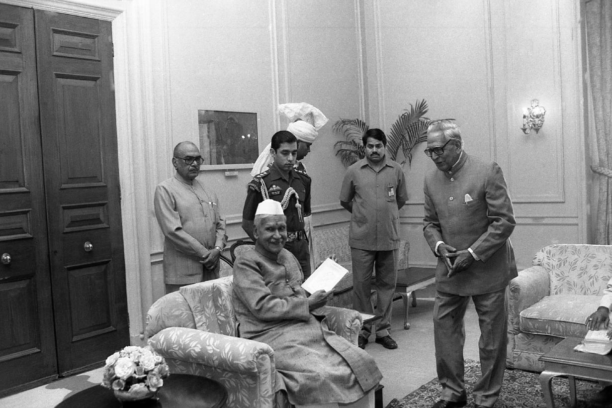 | Caption: | The President of India, Dr. Shankar Dayal Sharma receiving a copy of the book "Malvika" of late Shri Jhabermal Sharma at Rashtrapati Bhavan in New Delhi on March 30, 1996. |