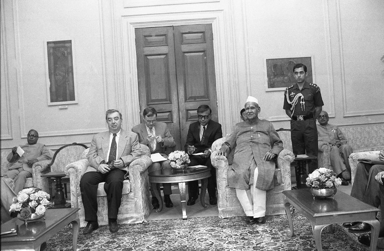 | Caption: | The President of India, Dr. Shankar Dayal Sharma meeting with H.E. Mr. Yevgeny M. Primakov, Minister of Foreign Affairs of the Russian Federation at Rashtrapati Bhavan in New Delhi on March 30, 1996. |