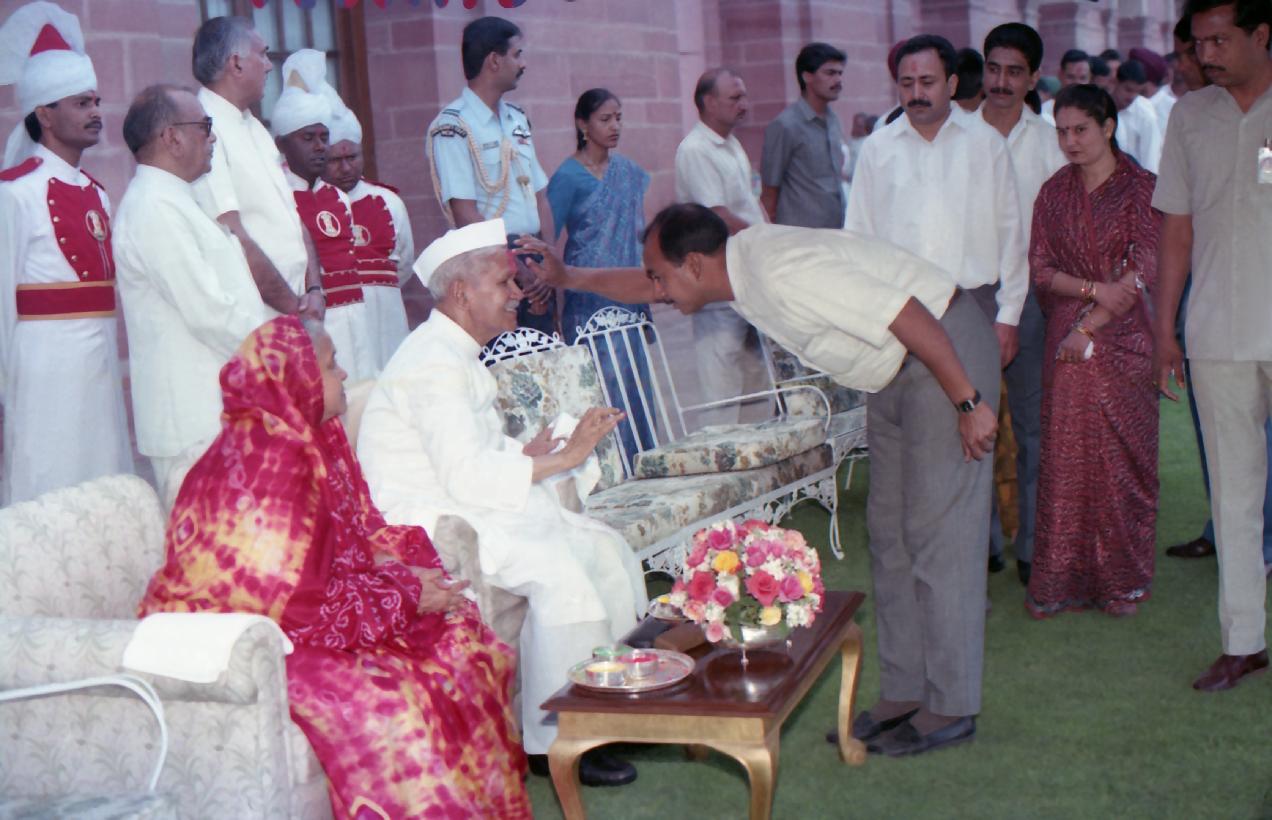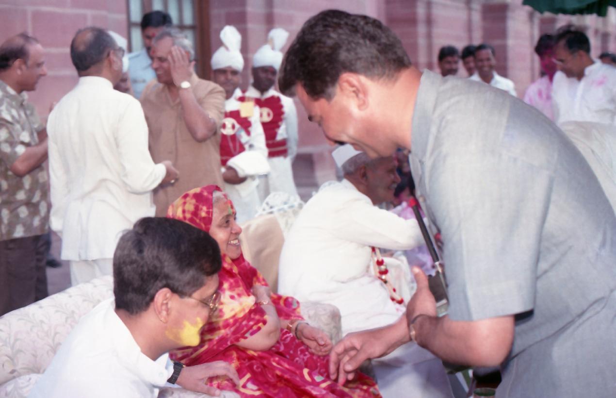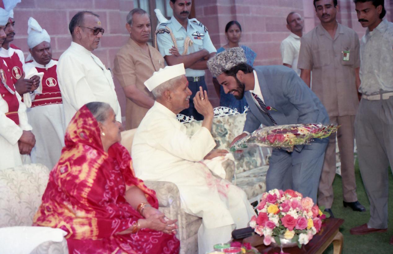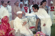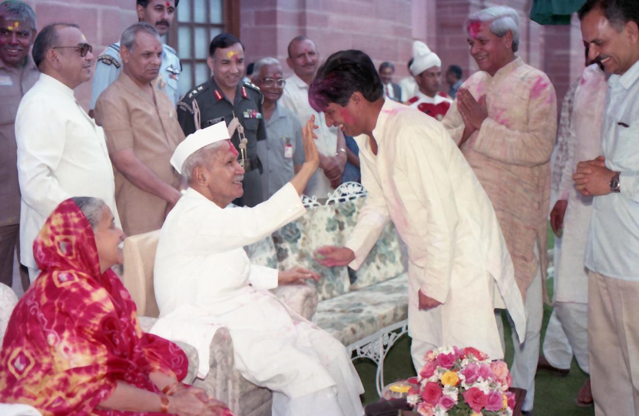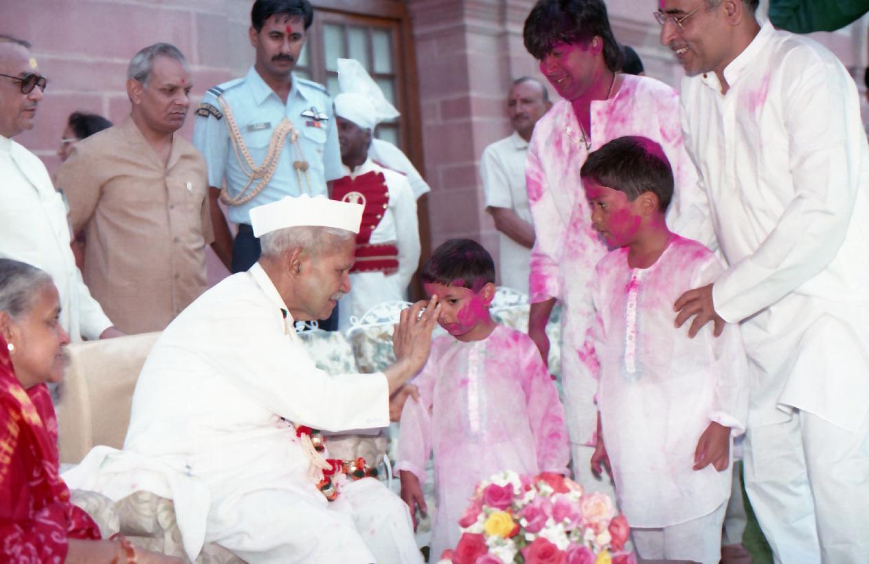 | Caption: | The President of India, Dr. Shankar Dayal Sharma receiving Holi Greetings from VIPs, Rashtrapati Bhavan staff and member of Public, at Rashtrapati Bhavan in New Delhi on March 27, 1994. |