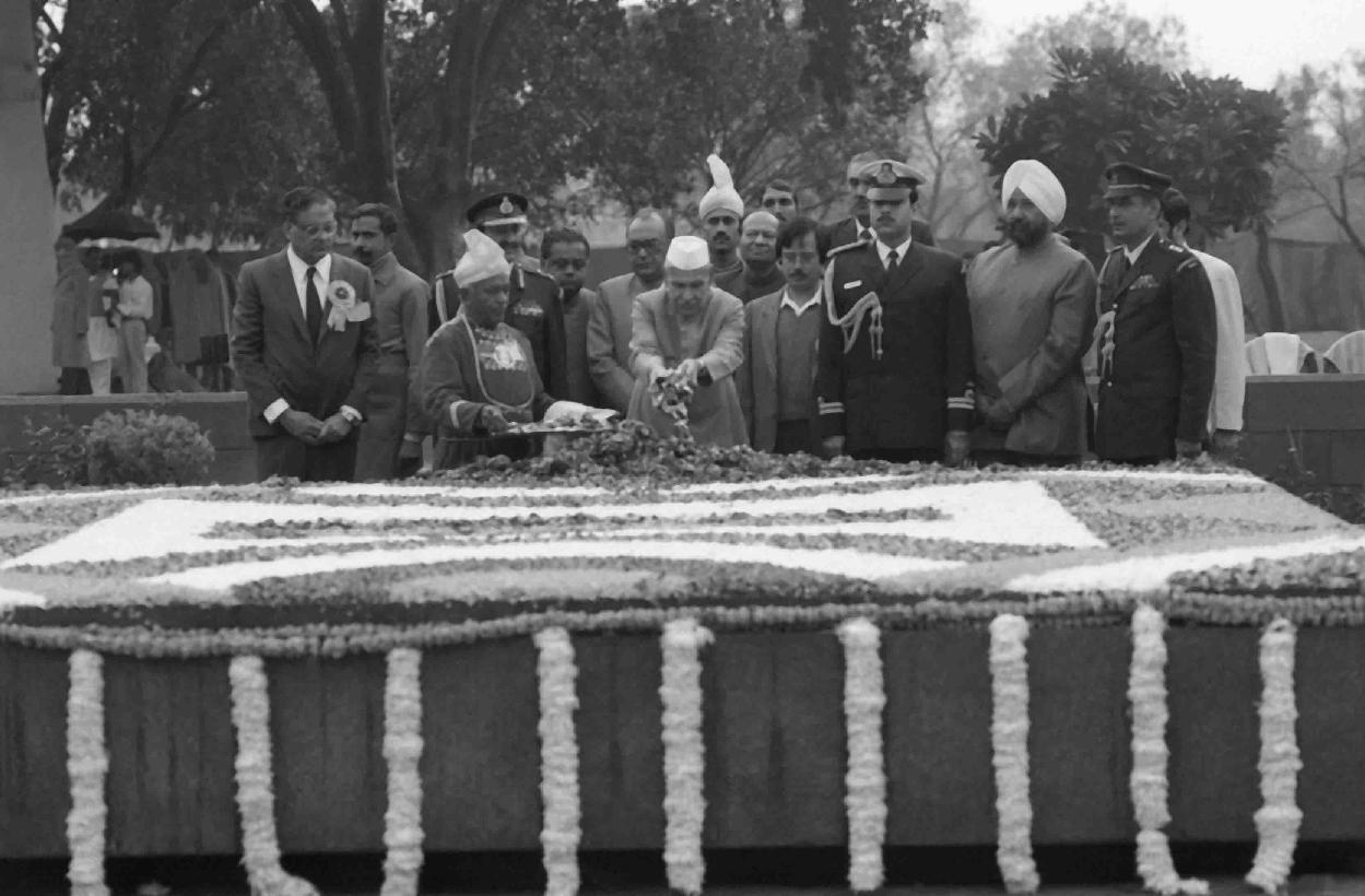 | Caption: | The President of India, Dr. Shankar Dayal Sharma paying homage at the Samadhi of Shri Lal Bahadur Shastri on his death anniversary at Vijay Ghat in New Delhi on January 11, 1994. |