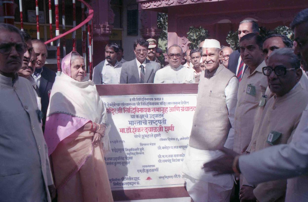 | Caption: | The President of India, Dr. Shankar Dayal Sharma inaugurating Shri Siddhivinayak Sabha Griha and Dhyana Mandir by unveiling the plaque, at Pune, Maharashtra on January 16, 1994. |