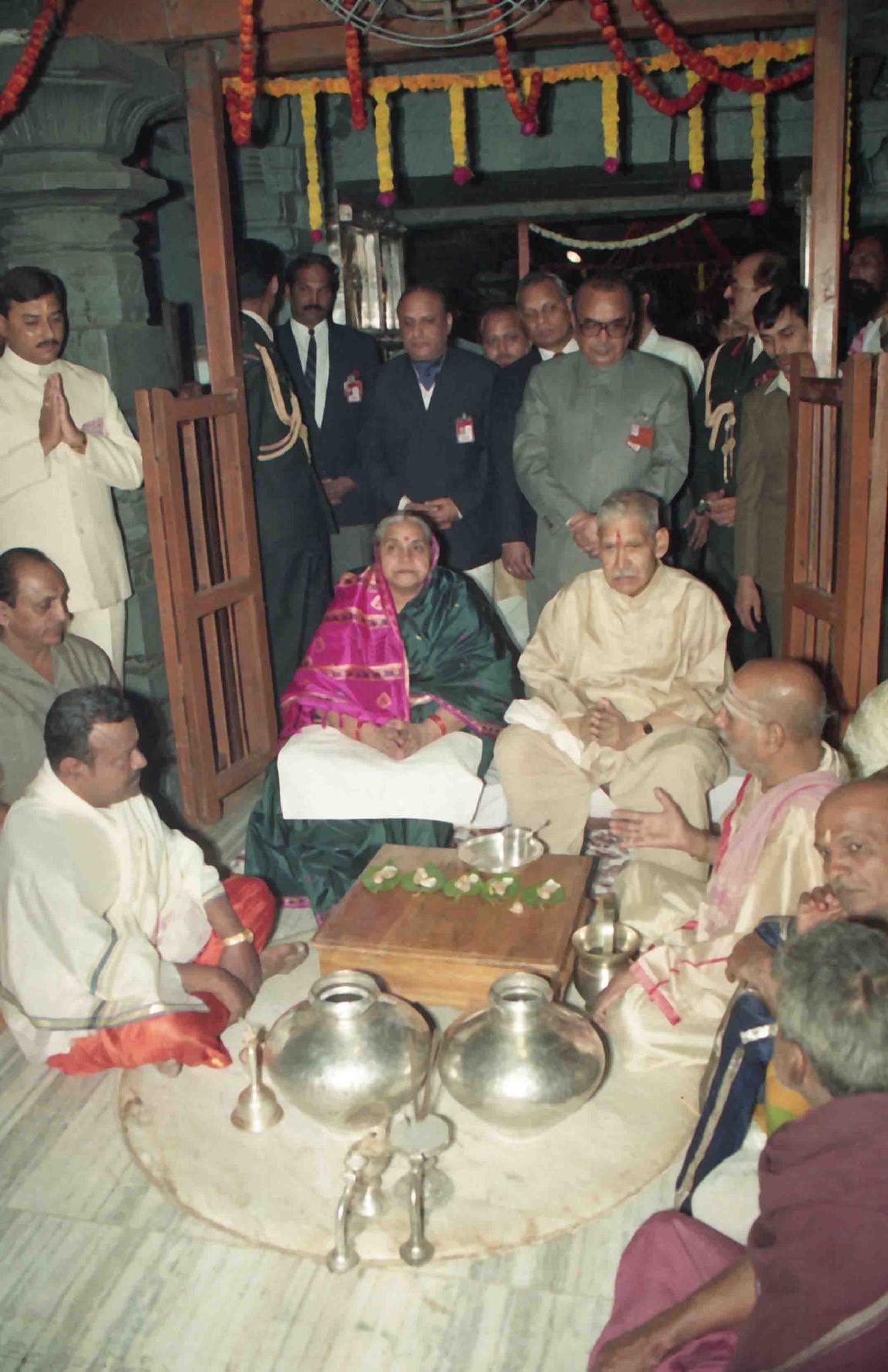 | Caption: | The President of India, Dr. Shankar Dayal Sharma offering puja, at Vithal Temple, at Pandharpur, Maharashtra on January 17, 1994. |