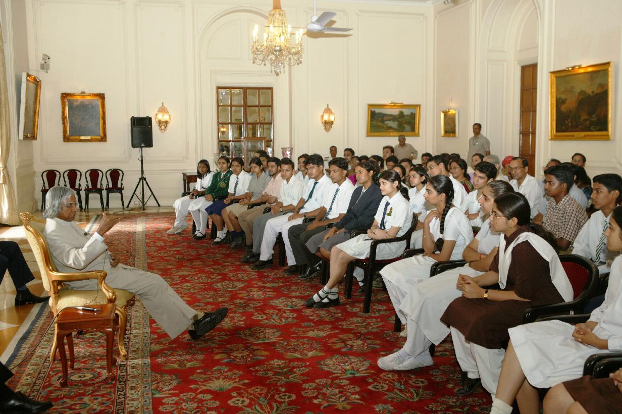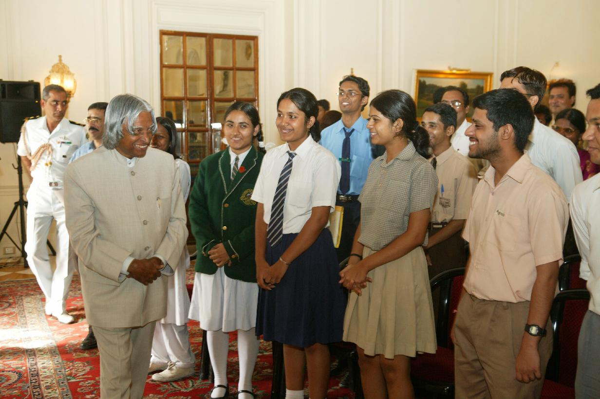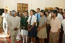 | Caption: | The Awardees of National Children Scientists Awards alongwith their Teacher Coordinators and Officials of Sankalp calling on the President of India, Dr A P J Abdul Kalam at the Yellow Drawing Room of Rashtrapati Bhavan in New Delhi on July 02, 2004 |