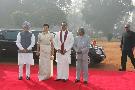 | Caption: | The President of India, Dr A P J Abdul Kalam at the Ceremonial Reception of the President of the Democratic Socialist Republic of Sri Lanka, HE Mr Mahinda Rajapaksa and his wife Mrs Rajapaksa at the Forecourt of Rashtrapati Bhavan in New Delhi on Dec 28, 2005 |