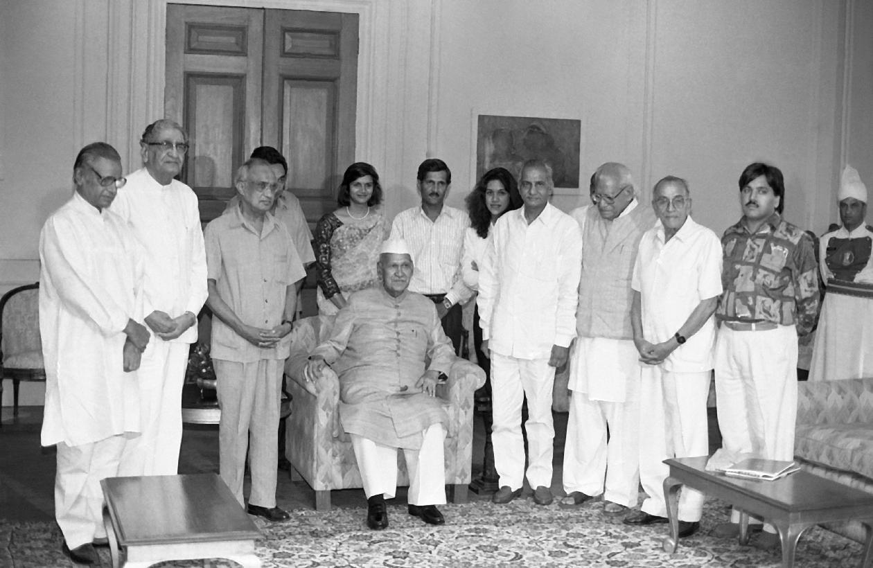 | Caption: | The President of India, Dr. Shankar Dayal Sharma meeting with Shri Shiv Charan Gupta, Ex-MP with Awaredees & Office bearers of Jan Jagriti Samaj at Rashtrapati Bhavan in New Delhi on July 27, 1994. |