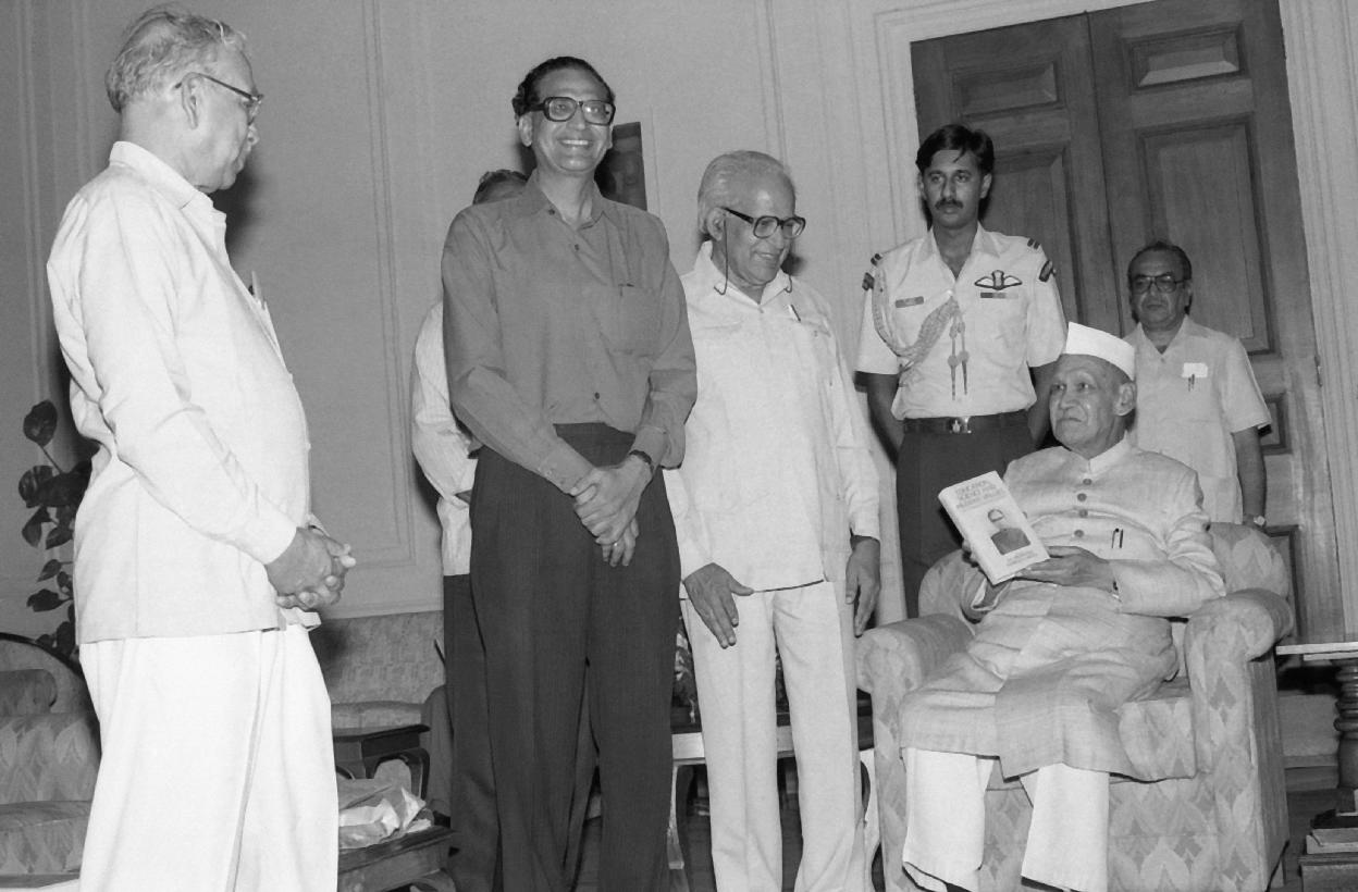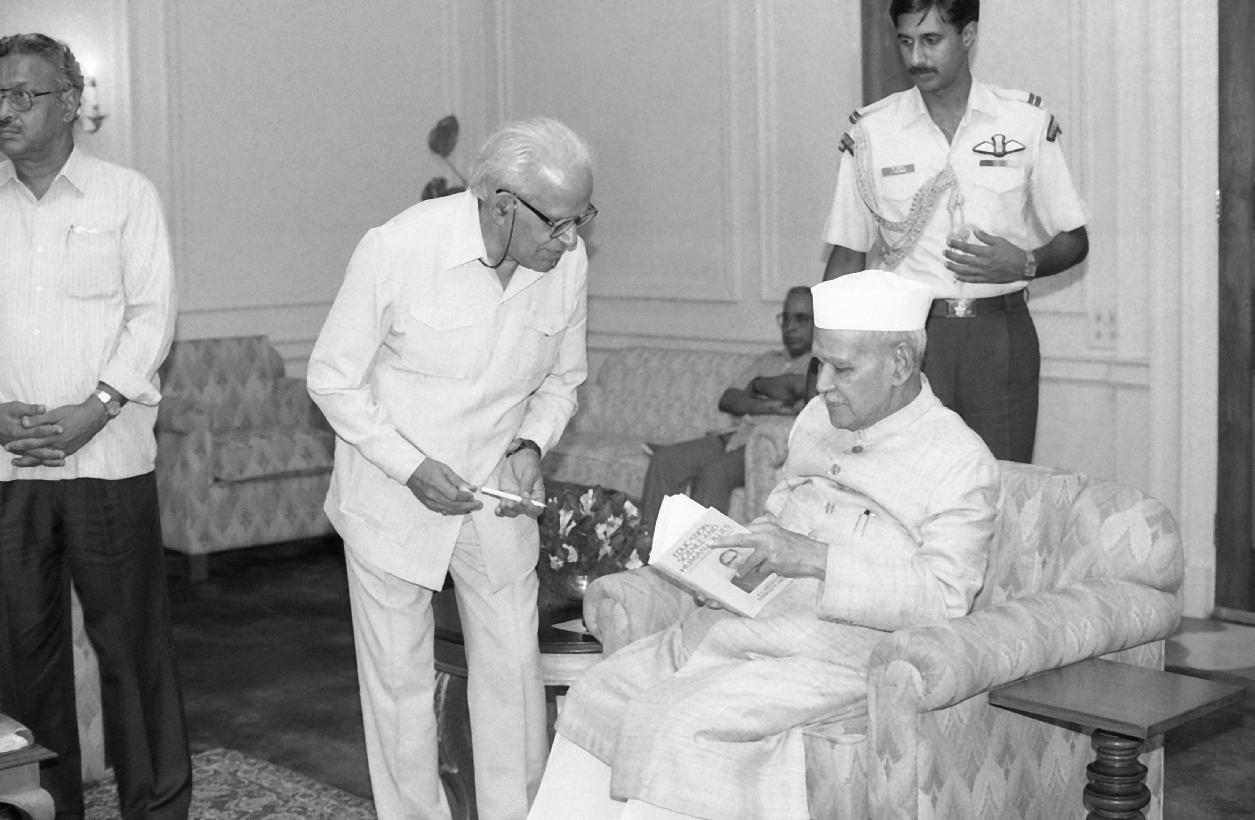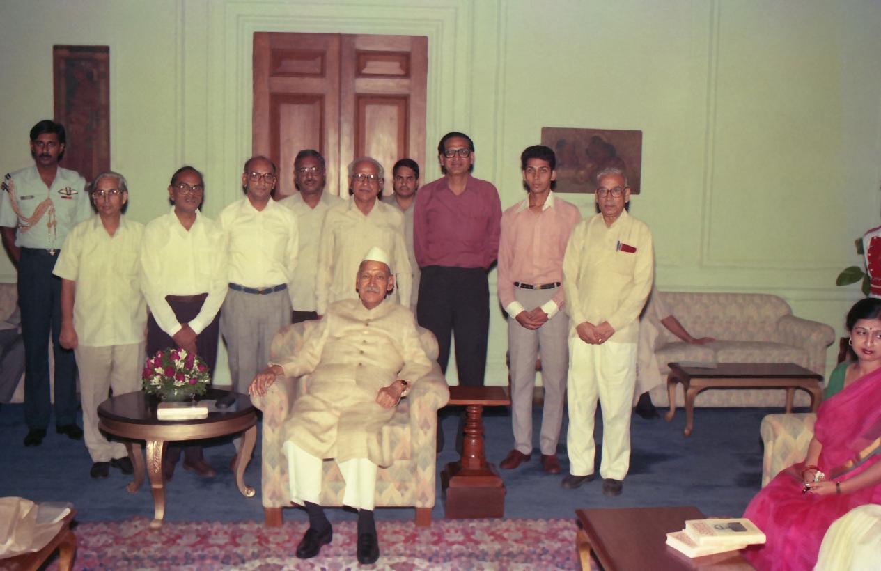 | Caption: | The President of India, Dr. Shankar Dayal Sharma receiving a copy of the book "Education, Science & Human Values: Essays in honour of Prof. D.S. Kothari" of Prof. R.C. Mehrotra & Prof. Ramesh K. Arora at Rashtrapati Bhavan in New Delhi on July 28, 1994. |