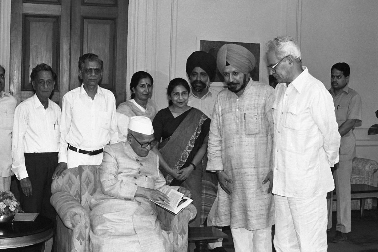| Caption: | The President of India, Dr. Shankar Dayal Sharma receiving a copy of the book "India's Foreign Policy: From Nehru to Rao" published by the Indian Council of World Affairs at Rashtrapati Bhavan in New Delhi on July 09, 1994. |