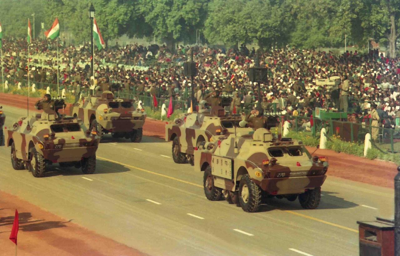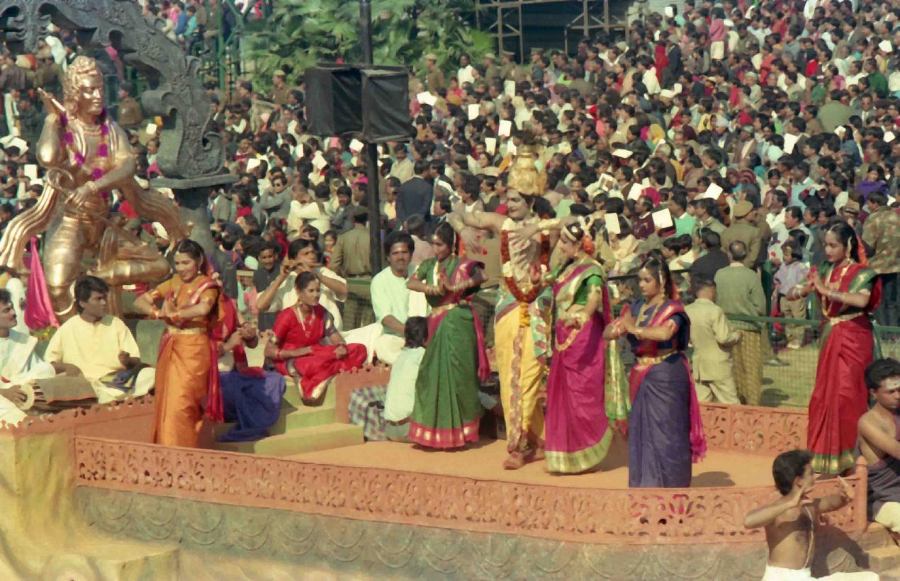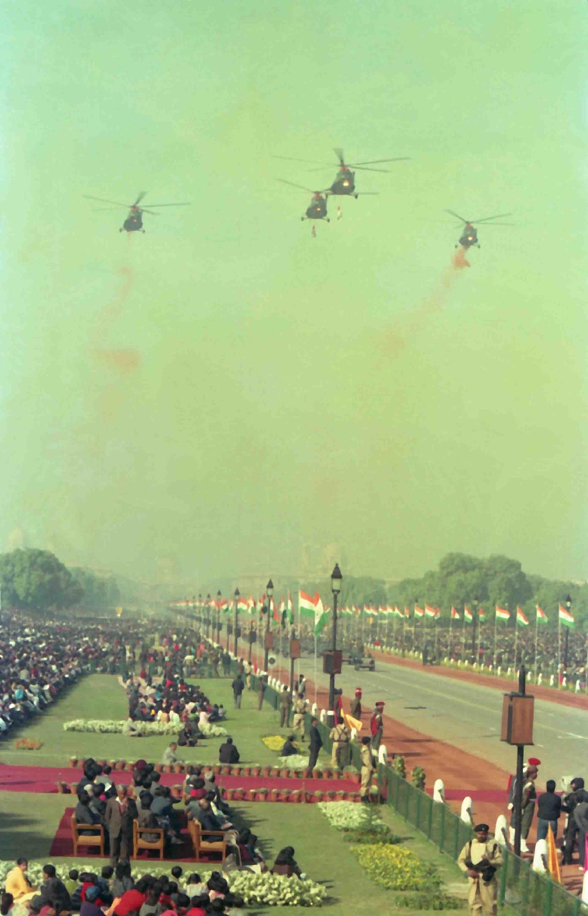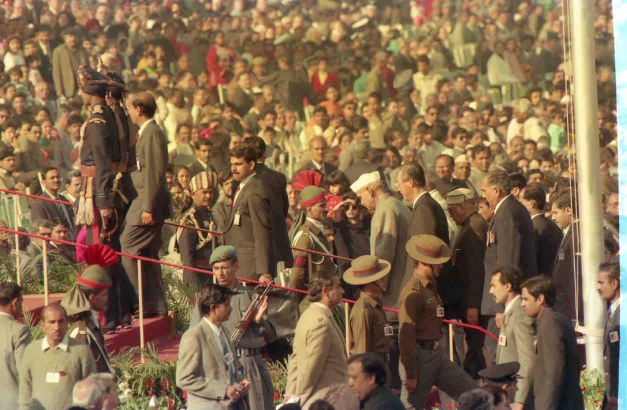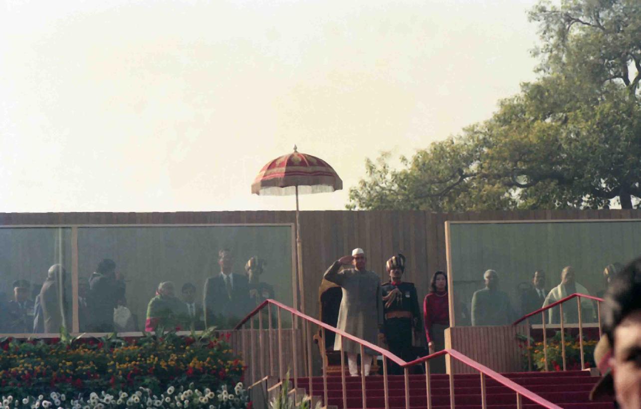 | Caption: | The President of India, Dr. Shankar Dayal Sharma alongwith H.E. Mr. Goh Chok tong, Prime Minister of Singapore witnessing the Republic Day at Rajpath in New Delhi on January 26, 1994. |