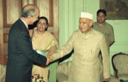 | Caption: | The Minister of Commerce, Industry & Handicrafts of Morocco, H.E. Mr. Driss Jettou calling on the President of India, Dr. Shankar Dayal Sharma, at Rashtrapati Bhavan in New Delhi on June 27, 1995. |