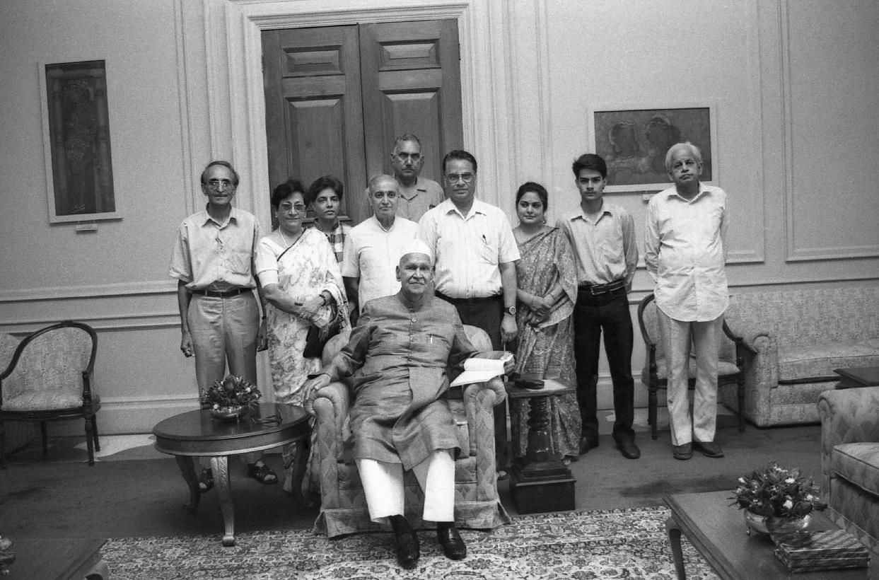 | Caption: | The President of India, Dr. Shankar Dayal Sharma receiving a copy of the book "Chanakya Niti" from Shri R.K. Sharma at Rashtrapati Bhavan in New Delhi on June 28, 1995. |