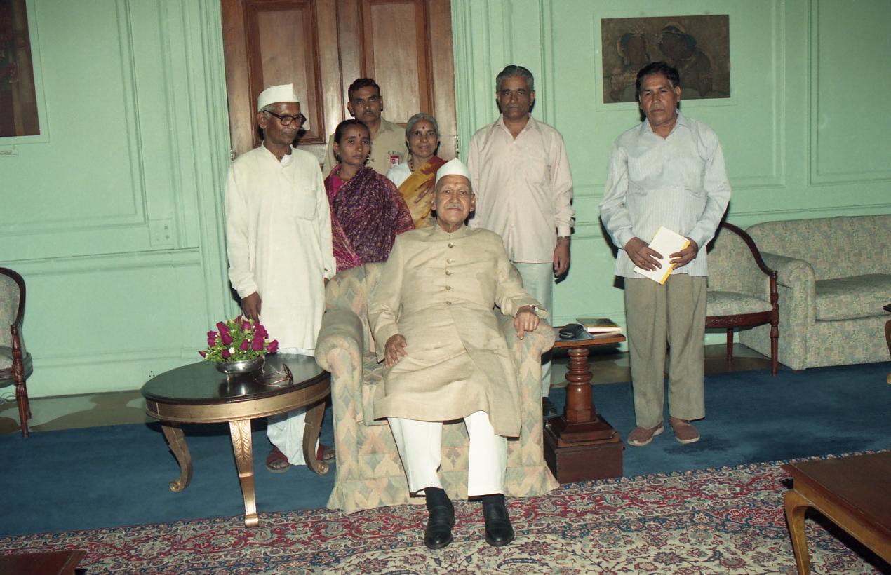 | Caption: | The President of India, Dr. Shankar Dayal Sharma receiving a copy of the book "Bhartiya Swadhinta Aandolan" from Dr. A.D. Pandey at Rashtrapati Bhavan in New Delhi on June 30, 1995. |