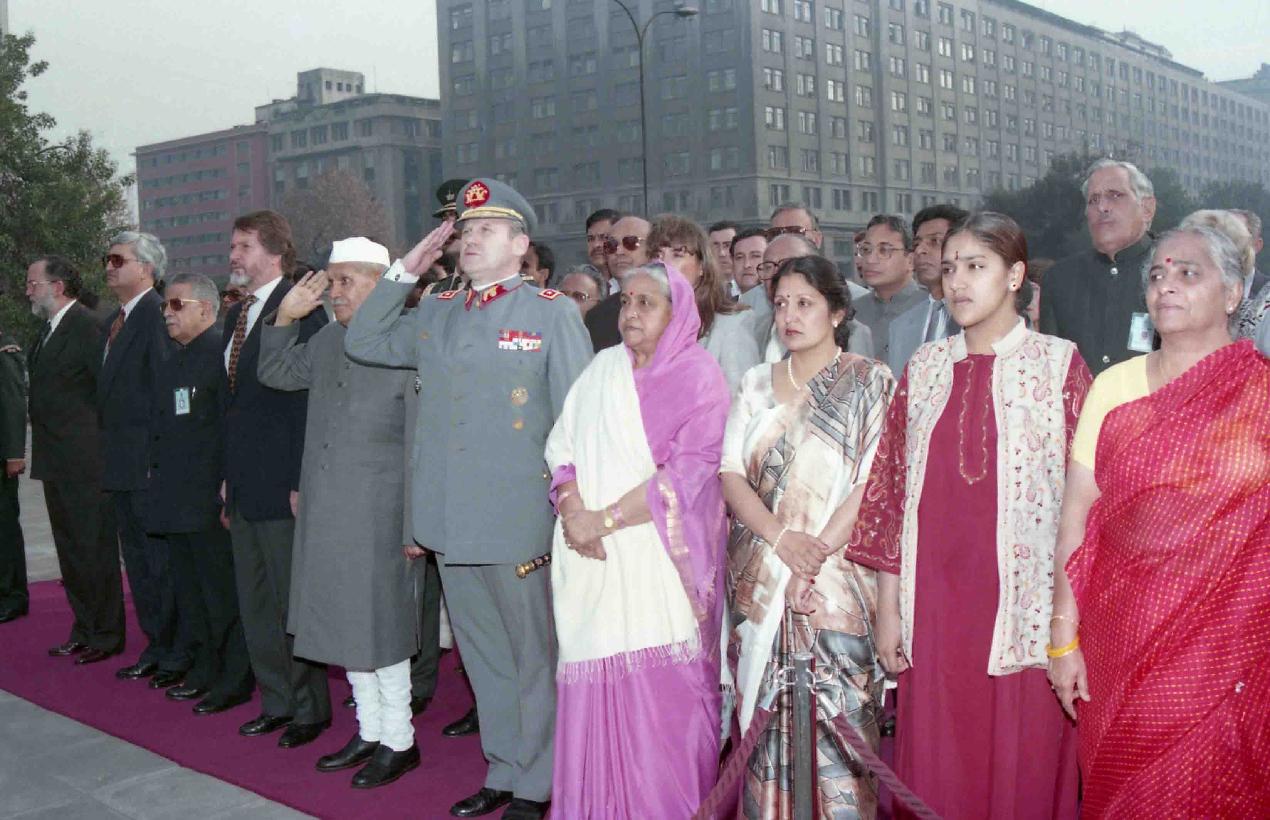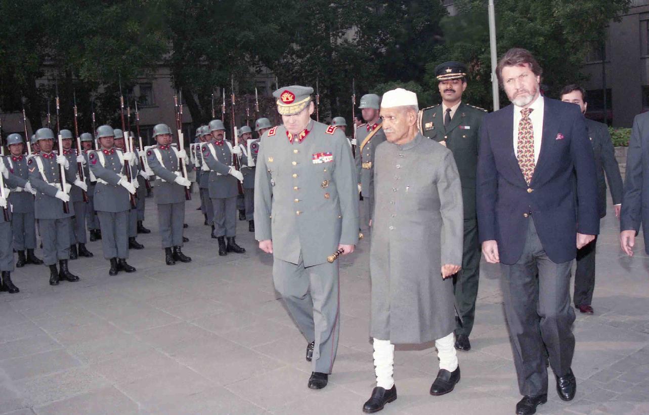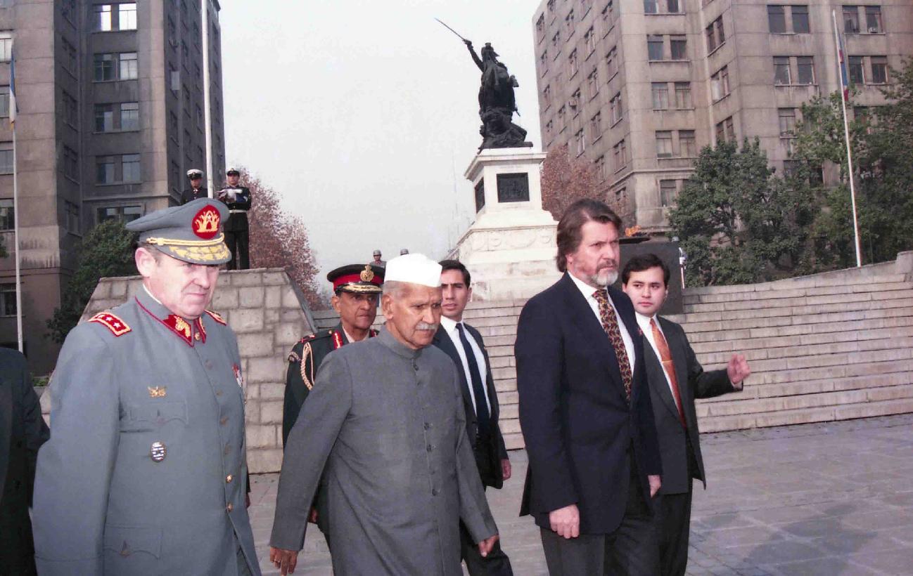 | Caption: | The President of India, Dr. Shankar Dayal Sharma laying wreath at General Bernardo O' Higgins Monument, at Santiago, in Chile on June 02, 1995. |