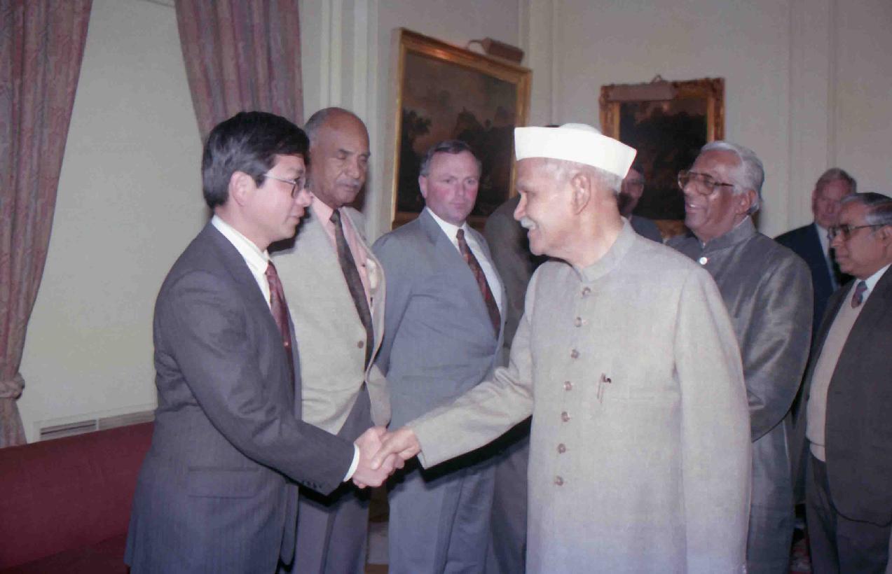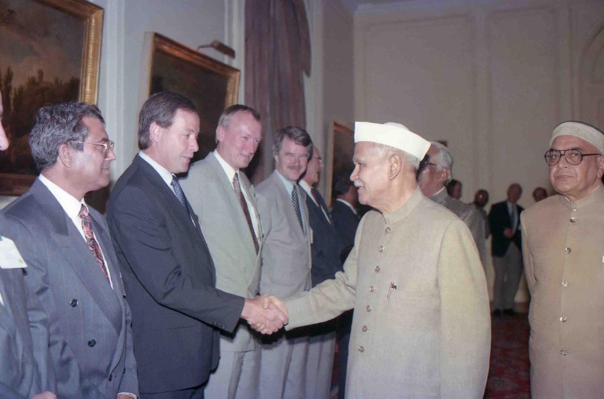 | Caption: | The President of India, Dr. Shankar Dayal Sharma meeting with Delegates of the 5th World Conference of World Association of Beet and Cane Growers at Rashtrapati Bhavan in New Delhi on January 27, 1994. |