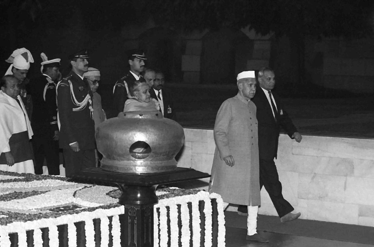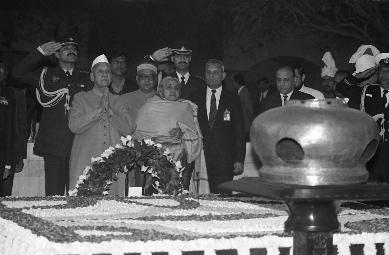 | Caption: | The President of India, Dr. Shankar Dayal Sharma paying homage at the Samadhi of Mahatma Gandhi at Rajghat in Delhi on January 30, 1994. |