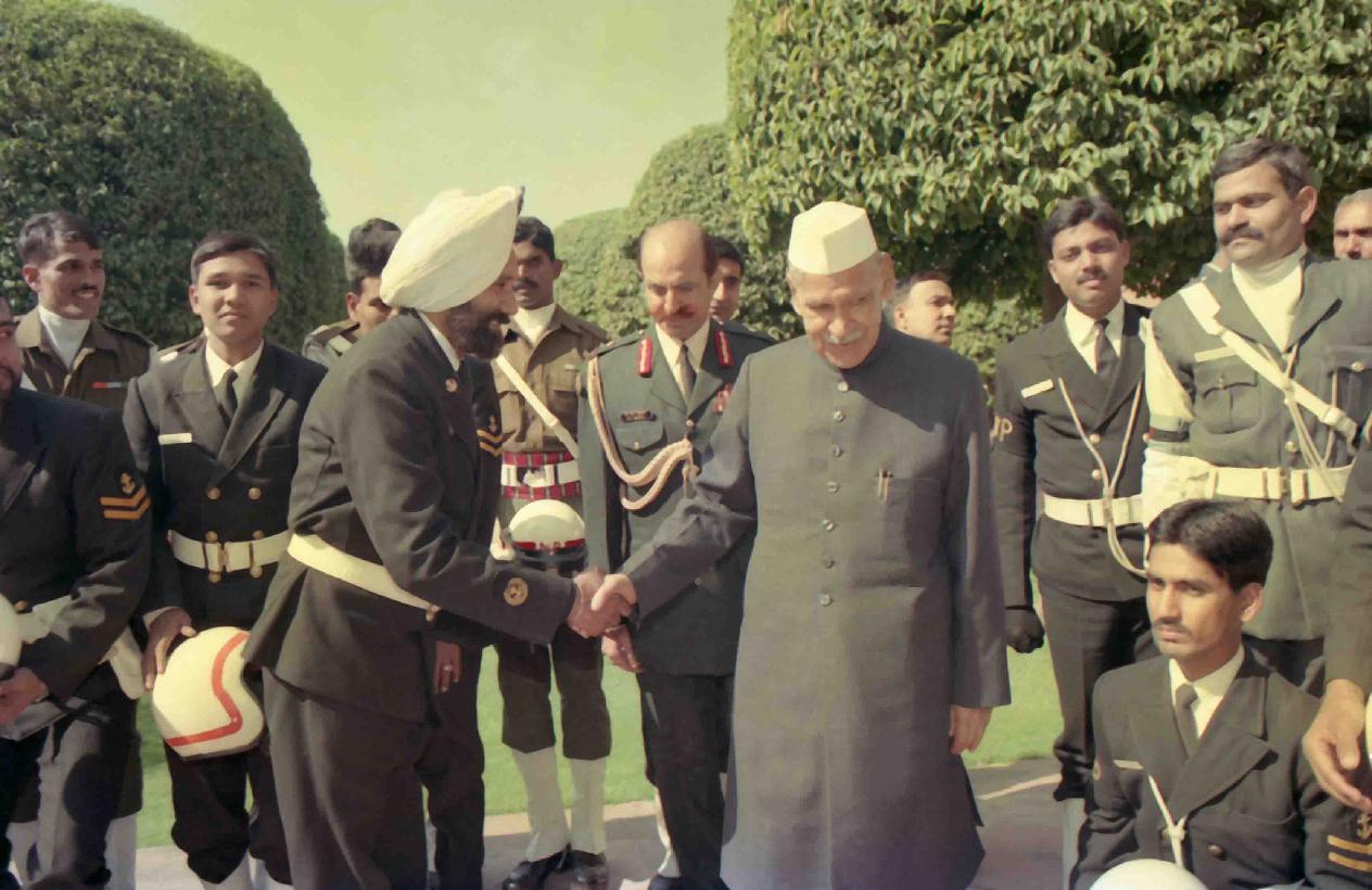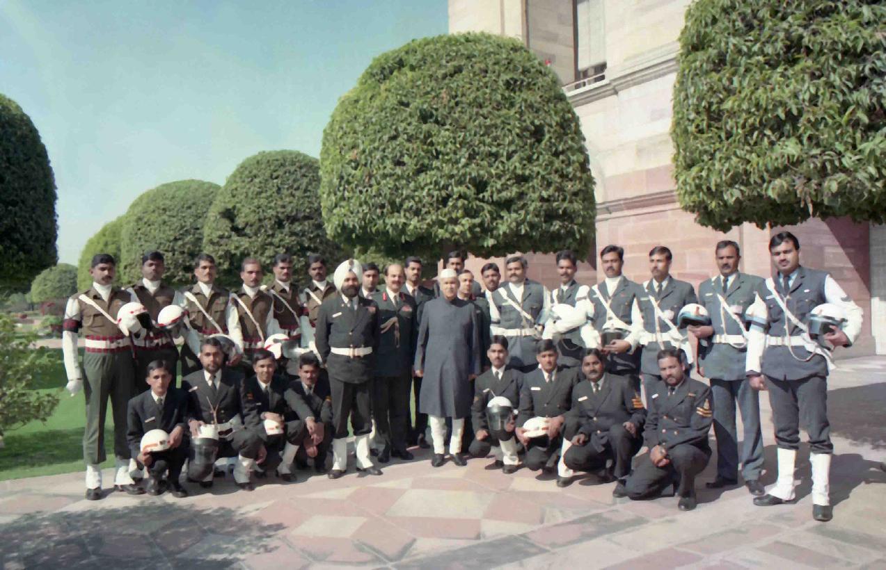 | Caption: | The President of India, Dr. Shankar Dayal Sharma in Group Photograph with Outriders at Rashtrapati Bhavan in New Delhi on January 30, 1994. |