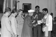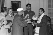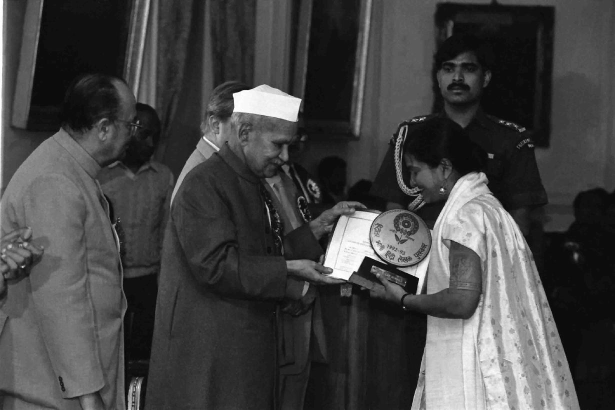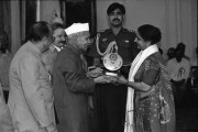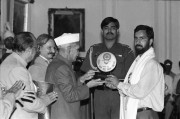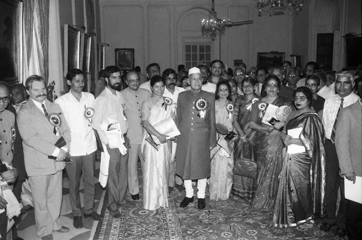 | Caption: | The President of India, Dr. Shankar Dayal Sharma presenting awards to non Hindi speaking Hindi-Writers at Rashtrapati Bhavan in New Delhi on March 12, 1994. |