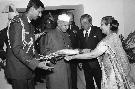 | Caption: | The President of India, Dr. Shankar Dayal Sharma felicitating the Casting of the film 'Sardar' at Rashtrapati Bhavan in New Delhi on January 10, 1994. |