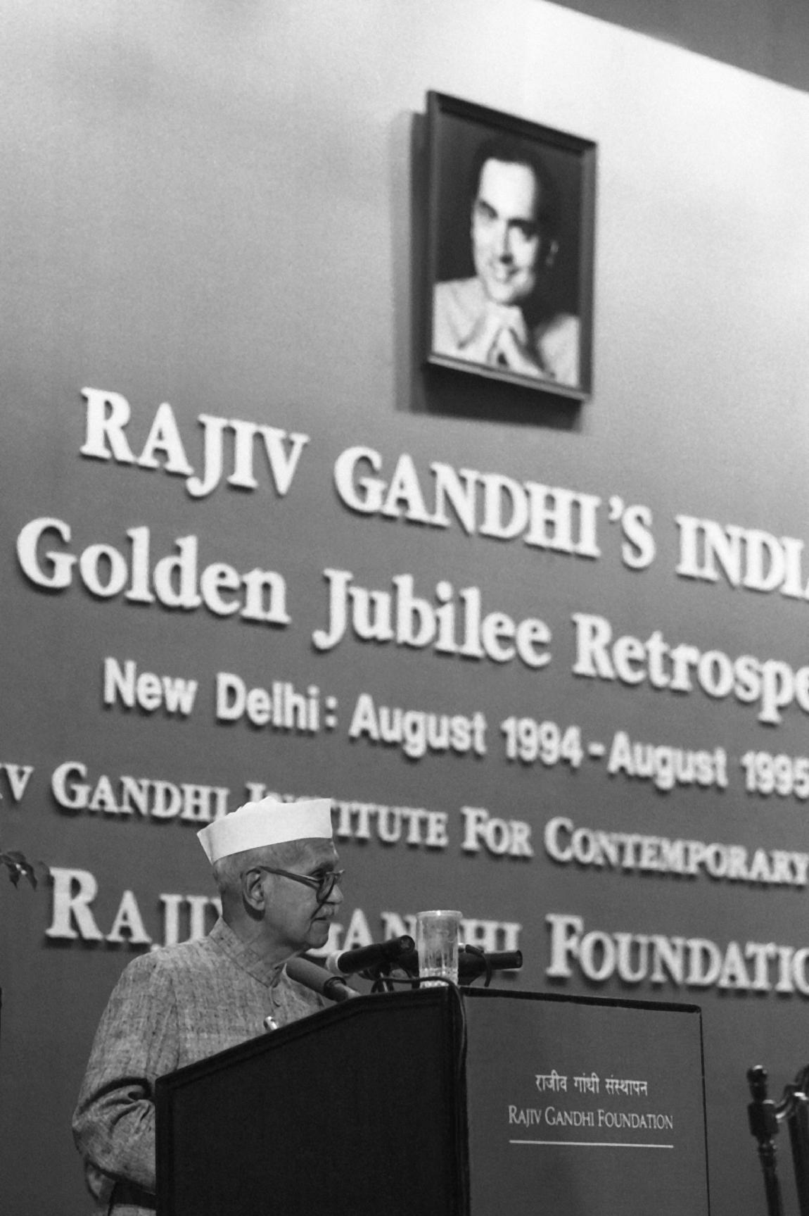 | Caption: | The President of India, Dr. Shankar Dayal Sharma addressing at the inauguration of the series of symposia organised by the Rajiv Gandhi Foundation at Jawahar Bhavan in New Delhi on August 20, 1994. |