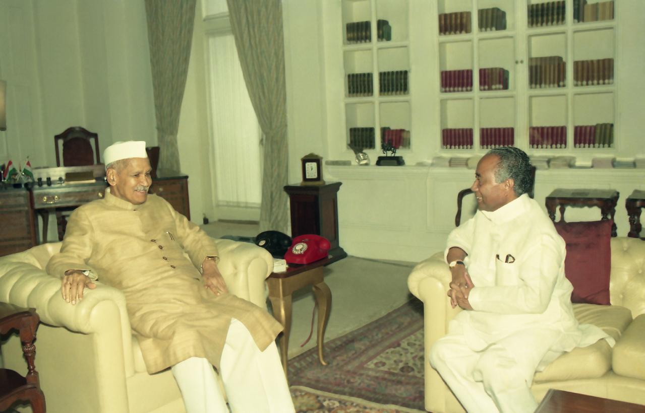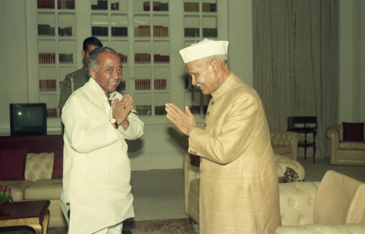 | Caption: | The President of India, Dr. Shankar Dayal Sharma meeting with Chief Minister of Assam, Shri Hiteswar Saikia at Rashtrapati Bhavan in New Delhi on August 22, 1994. |