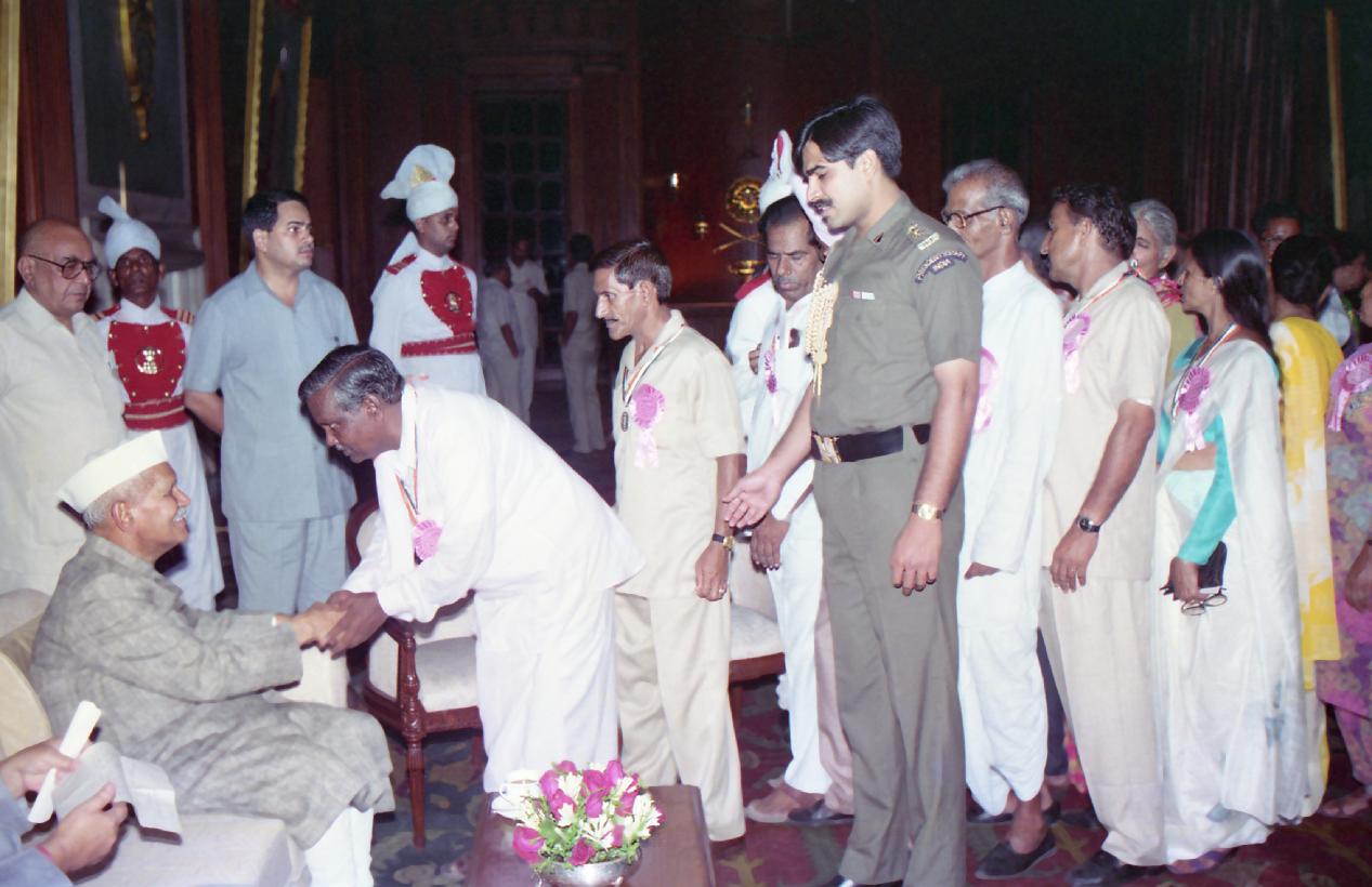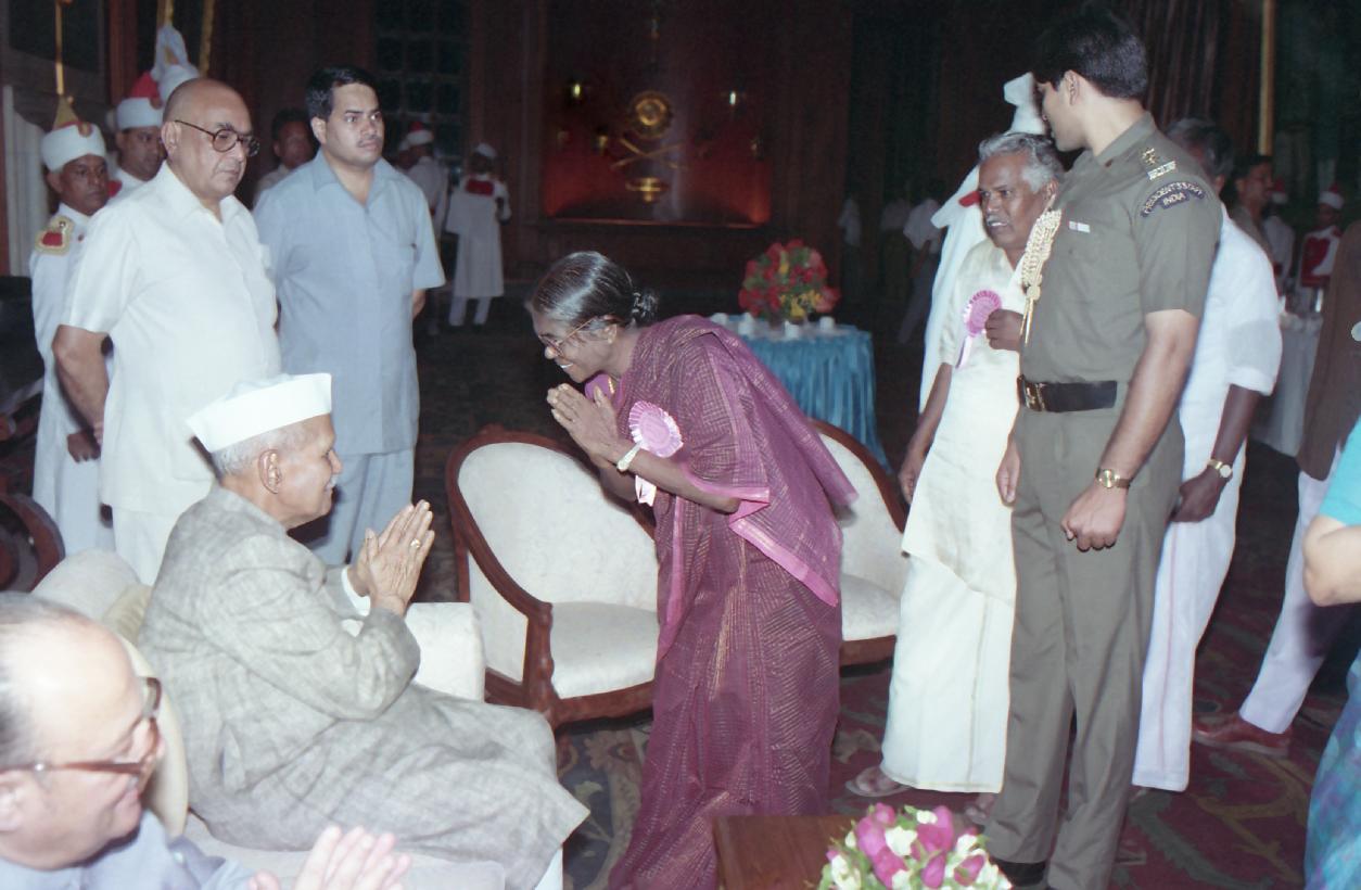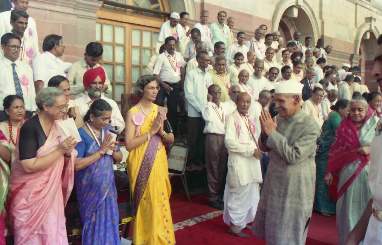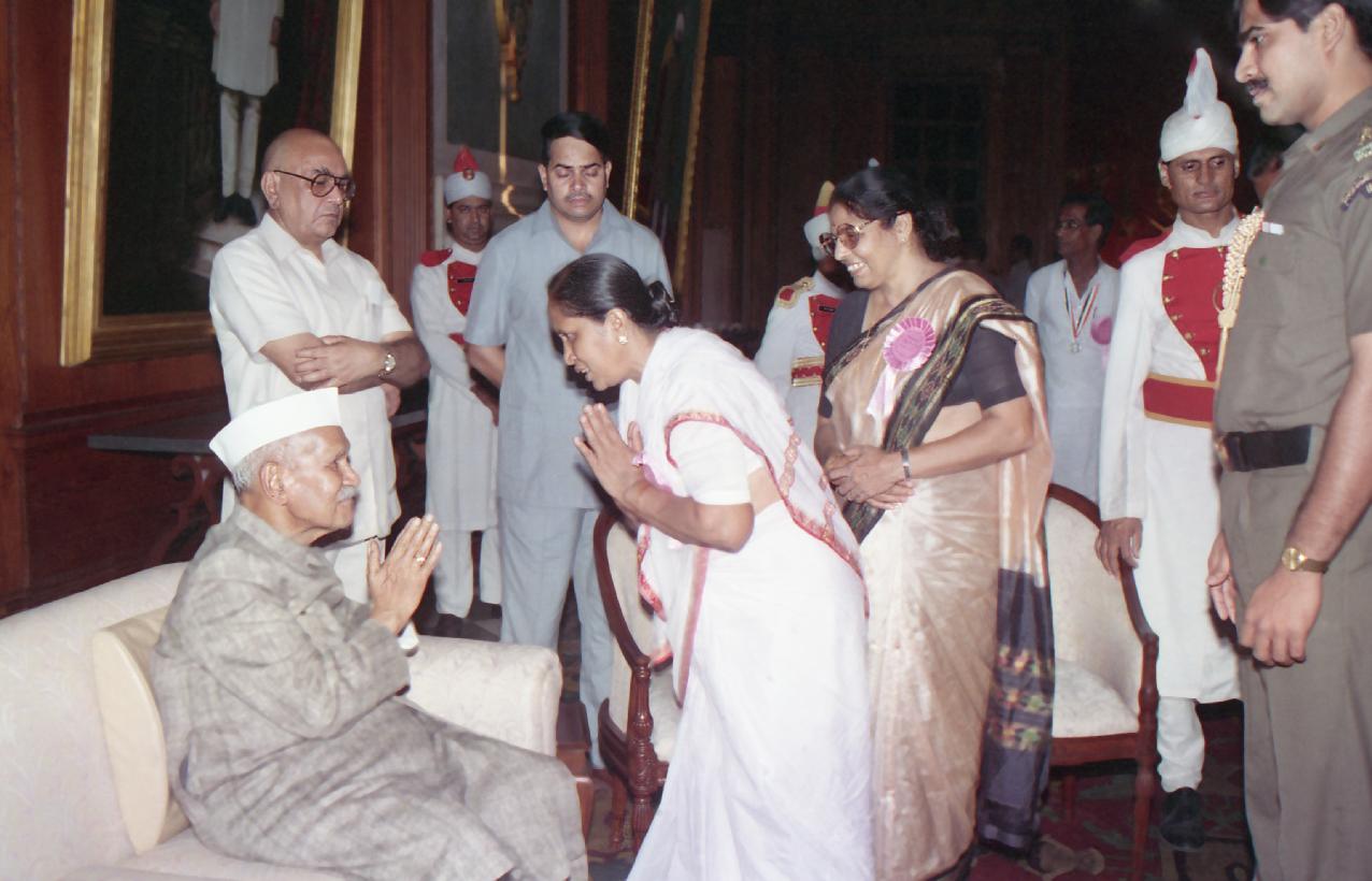| Caption: | The President of India, Dr. Shankar Dayal Sharma meeting with the Award winning Teachers for the year 1993 during a Reception, at Rashtrapati Bhavan in New Delhi on September 05, 1994. |