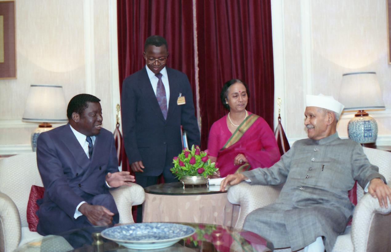 | Caption: | The President of Republic of Togo, H.E. General Gnassingbe Eyadema calling on the President of India, Dr. Shankar Dayal Sharma, at Rashtrapati Bhavan in New Delhi on September 27, 1994. |