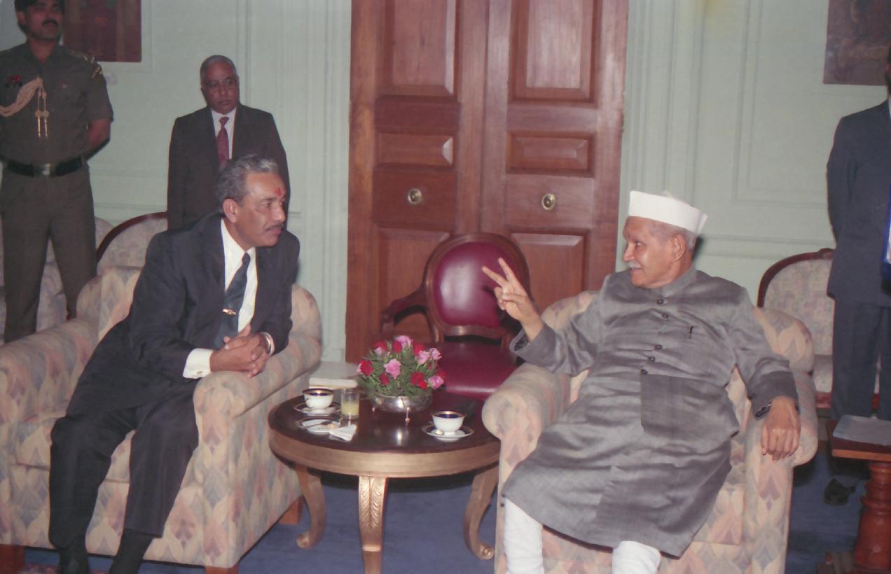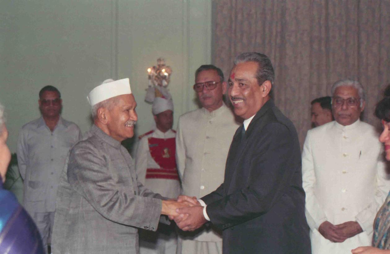 | Caption: | The President of India, Dr. Shankar Dayal Sharma meeting with Members of Shri Dharmic Leela Committee at Rashtrapati Bhavan in New Delhi on November 12, 1994. |
